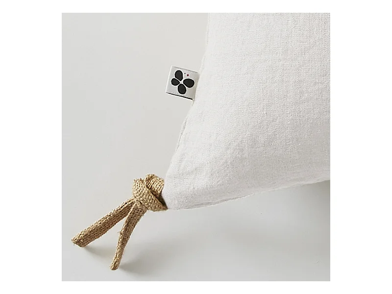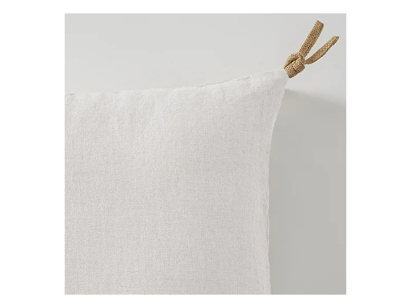 Coussin 40 x 60 cm en lin lavé blanc avec 4 nouettes en jute - LUISA