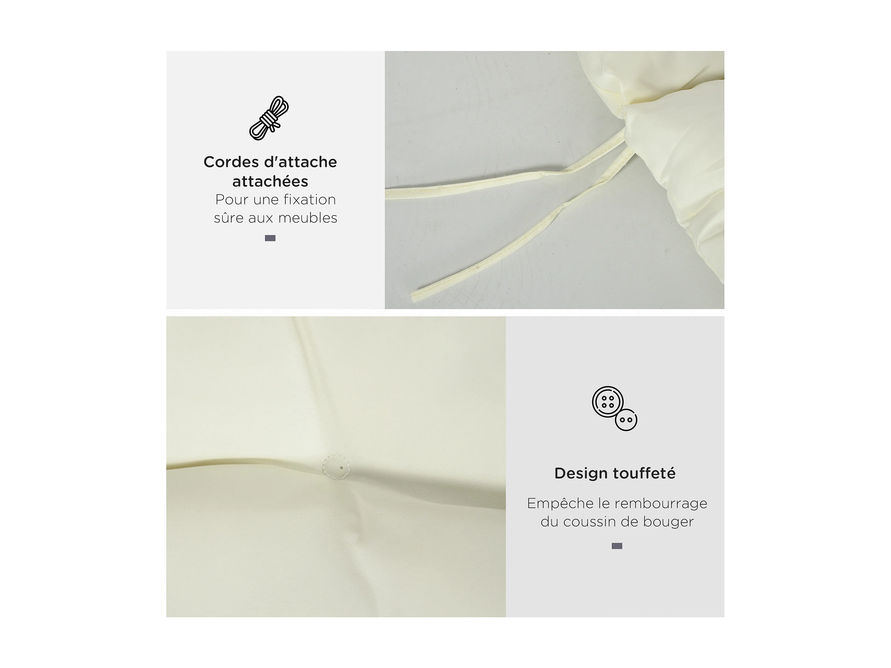 Coussin bain de soleil - coussin matelassé chaise longue - dim. 200L x 60l cm - ép. 13 cm - attaches - polyester crème