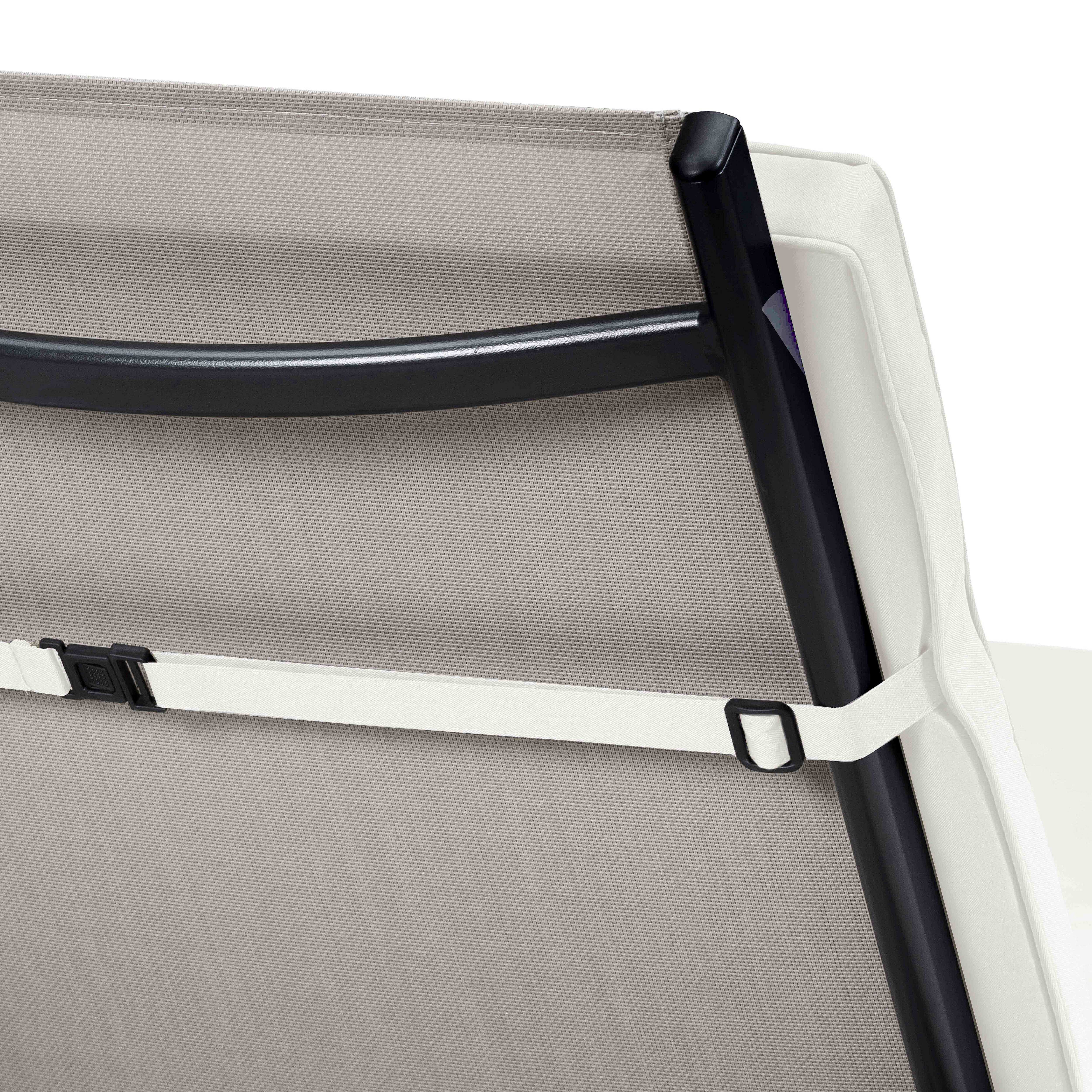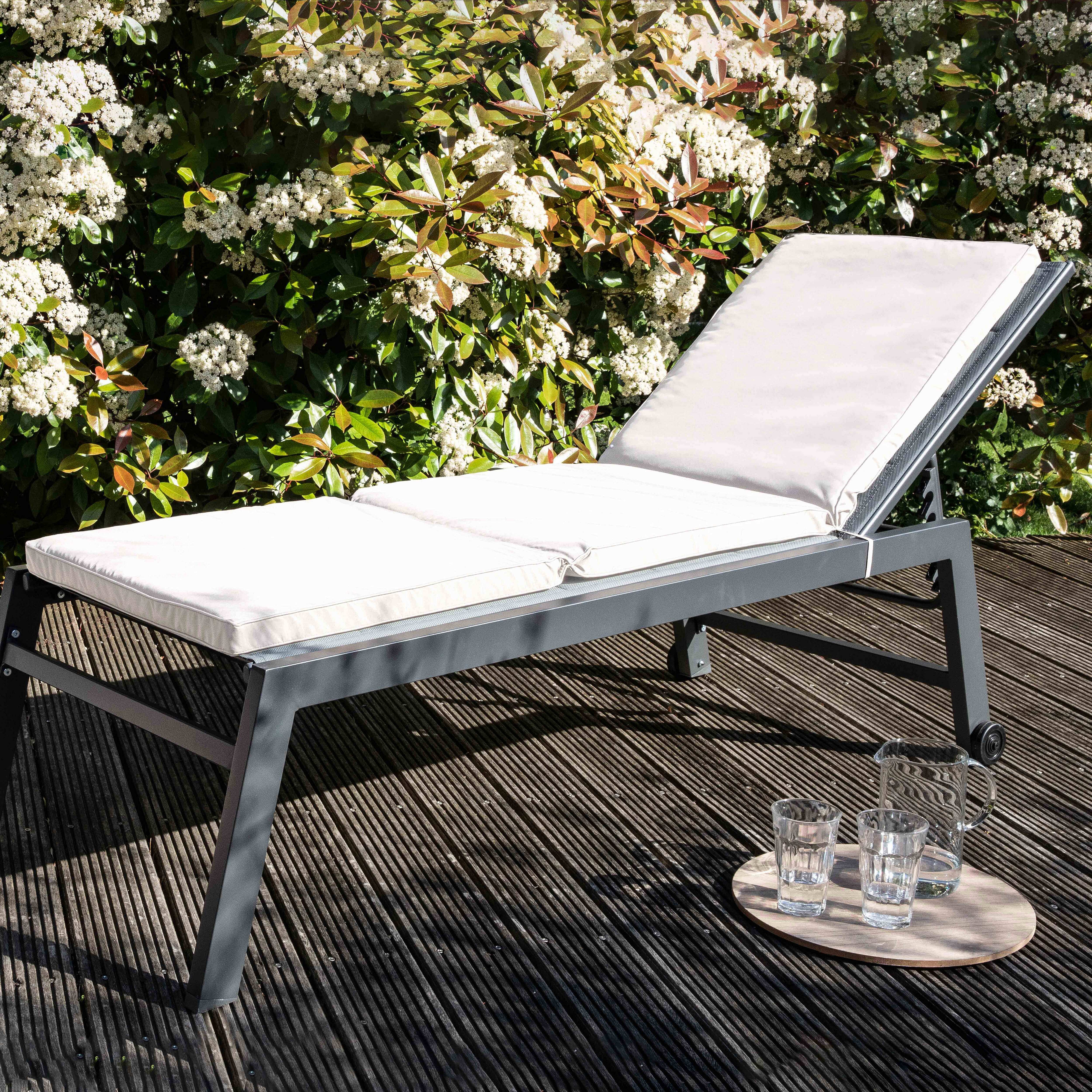Bain de soleil transat pliable inclinable - coussins, espace tête - acier noir polyester gris chiné