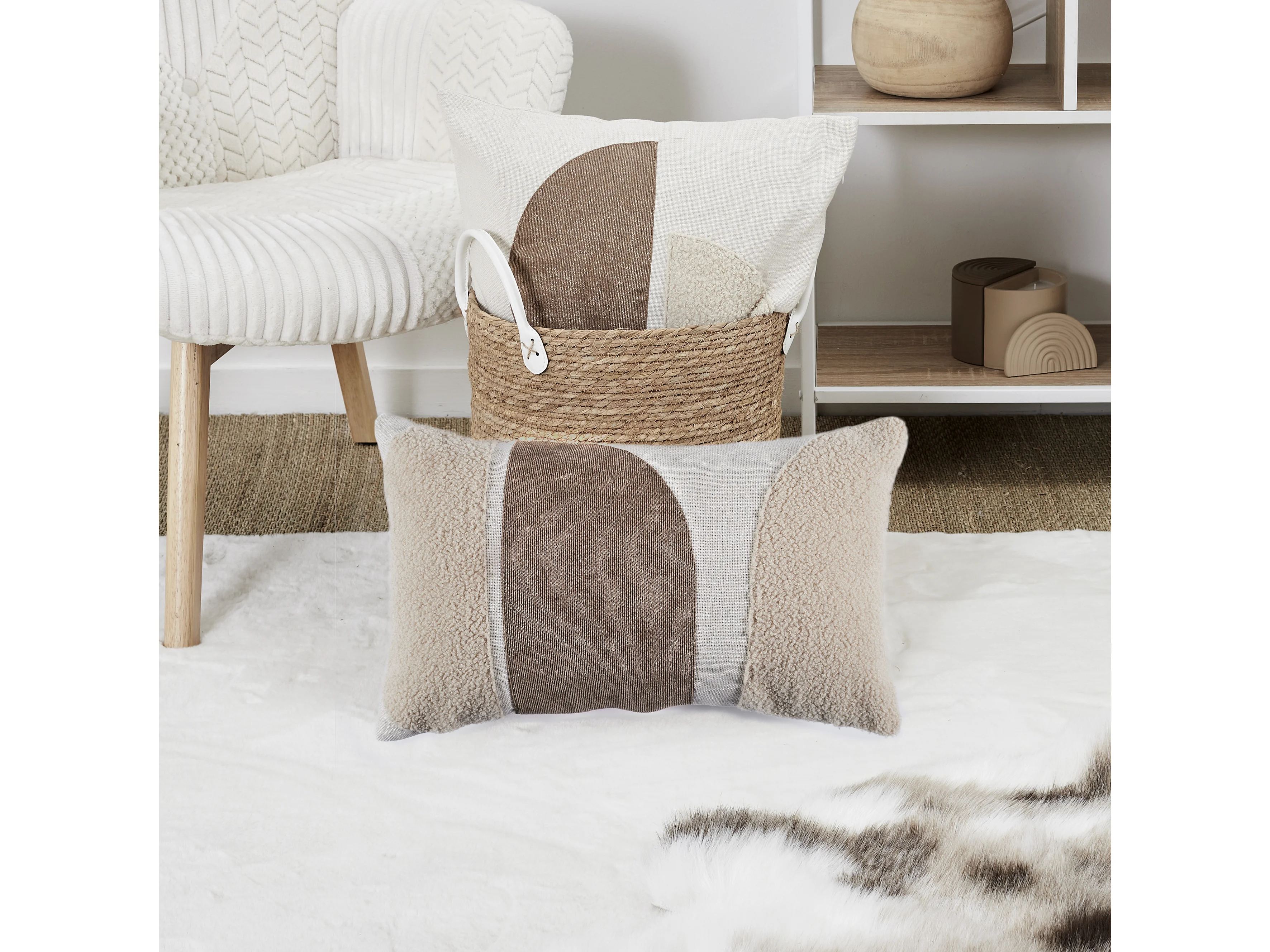 Coussin Déco "Bouclette" 30x50cm Beige & Blanc