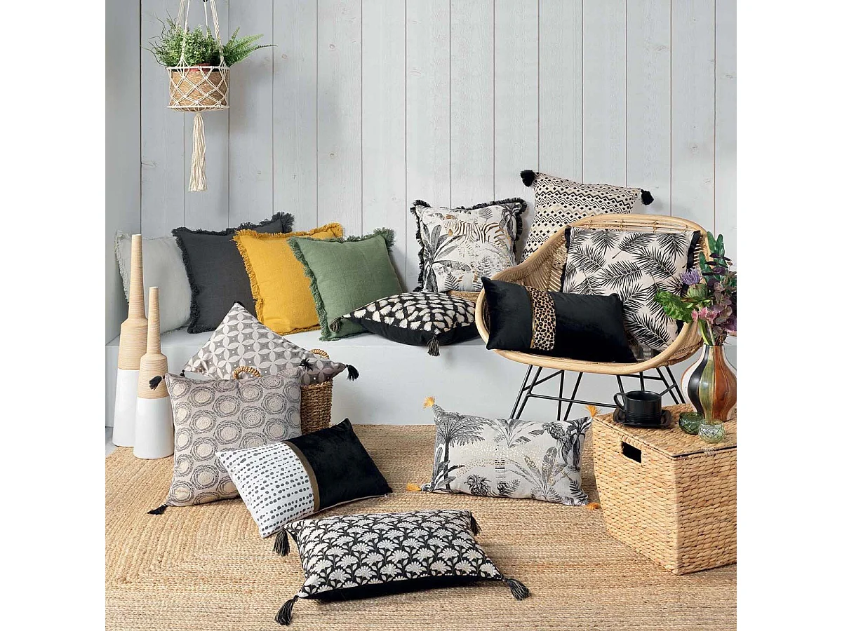 Now's Home - Coussin En Coton Imprime Frange Jaune Mimosa 30x50cm Guama