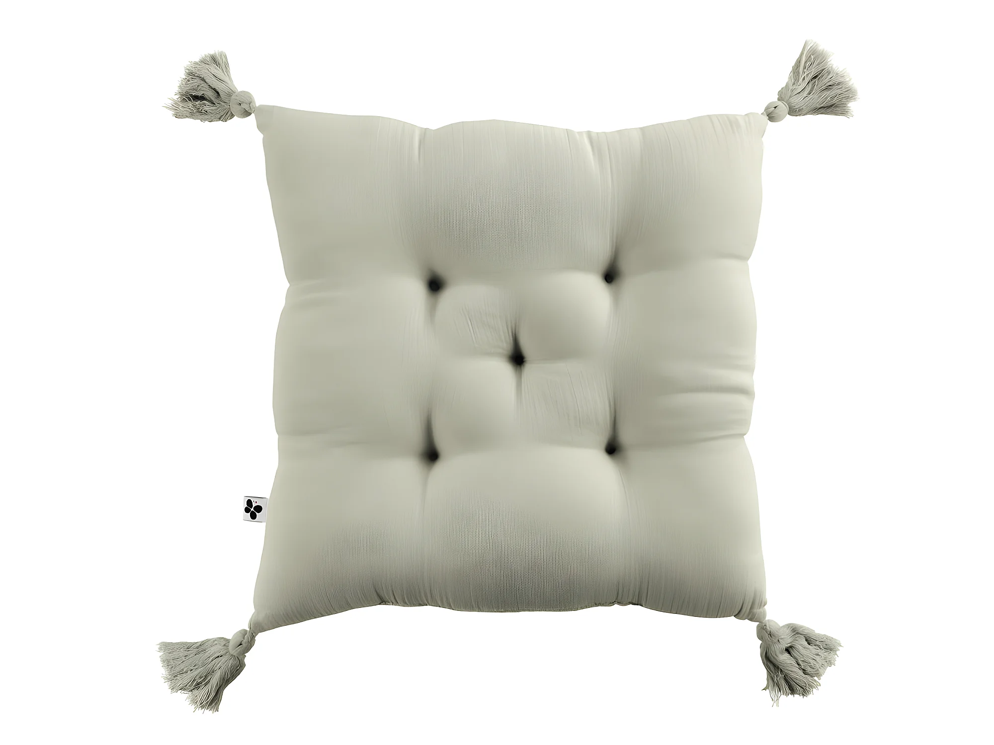 Coussin capitonné 5 points avec pompons "Gaïa" 40 x 40 cm "Gaze de Coton"