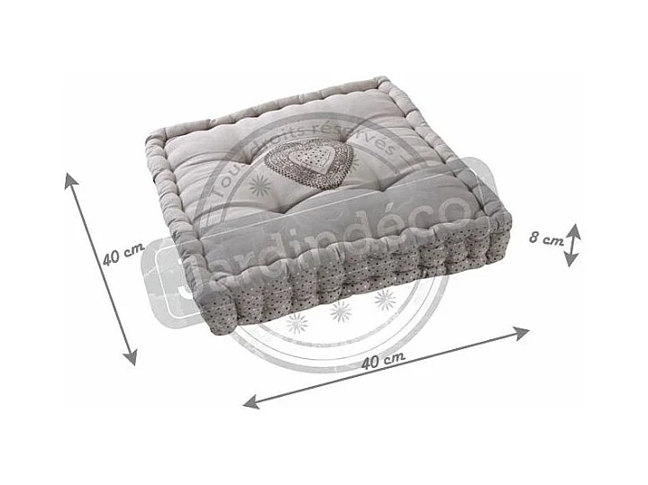 Coussin de sol ou de palette, broderie, 100% coton. M/HeartAcero.09 40x40x10cm