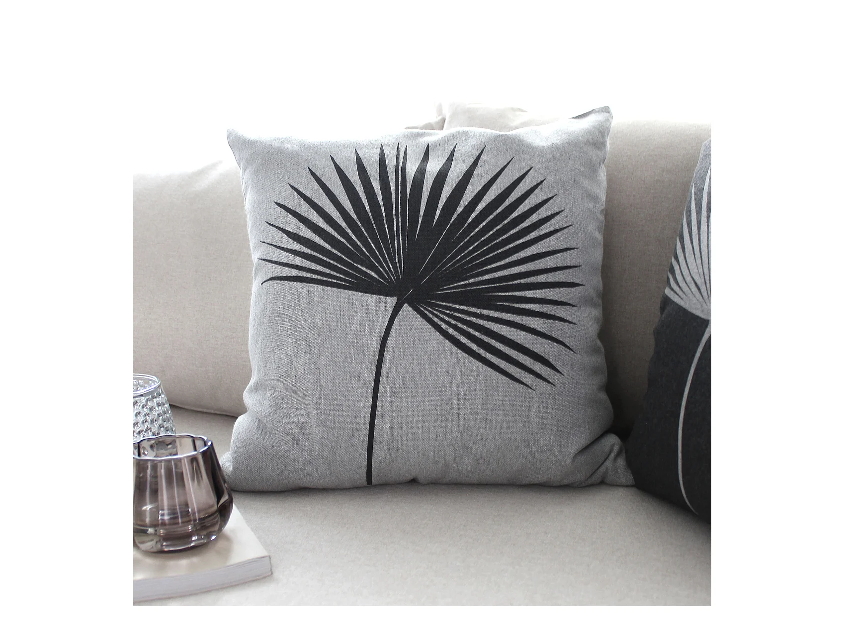 Coussin Déco Imprimé "Baya" 40x40cm Gris Clair