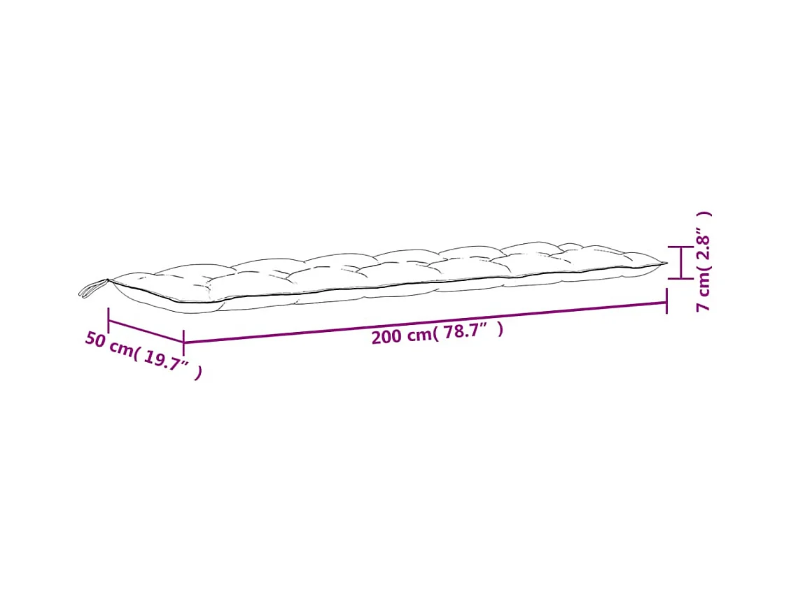 Coussin de banc de jardin multicolore 200x50x7 cm tissu