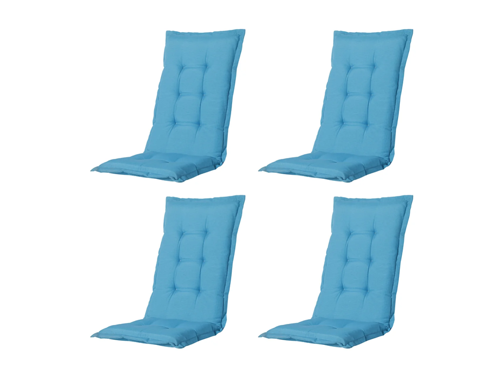 Coussin de chaise de jardin dossier haut Naples bleu azur - Env. 120 x 50 cm - Lot de 4