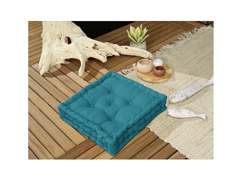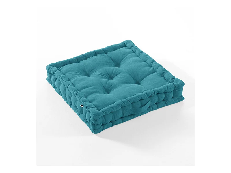 Coussin de sol 50 x 50 cm matelassé en coton bleu - DOLORES