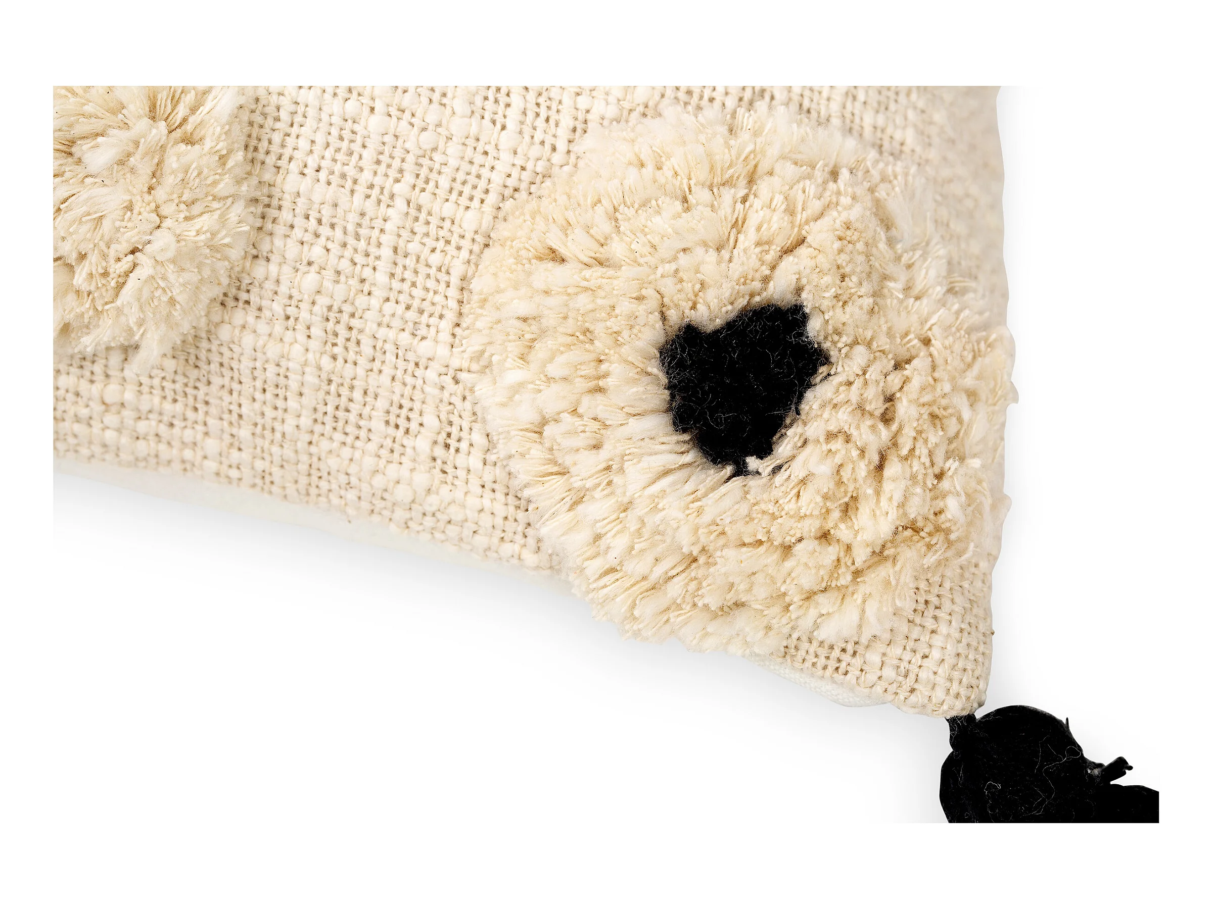 Coussin Déco Uni à Pompons "Panama" 50x70cm Noir