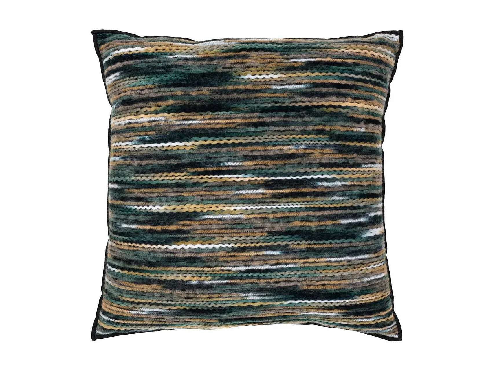 Coussin Déco Carré Recto Rayé Lainage multicolore et Verso Noir - AMYRA