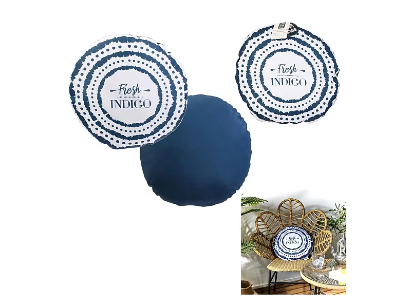 Coussin Déco d'Extérieur Rond "Indigo" 40cm Bleu