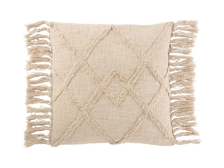 Coussin Déco Franges "Losange" 50x50cm Crème