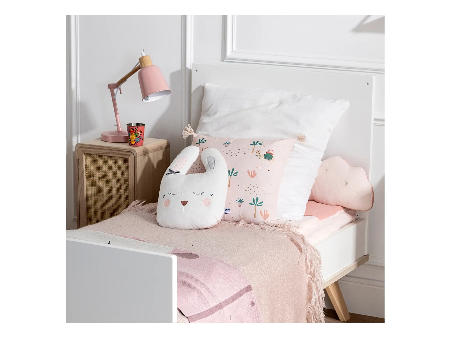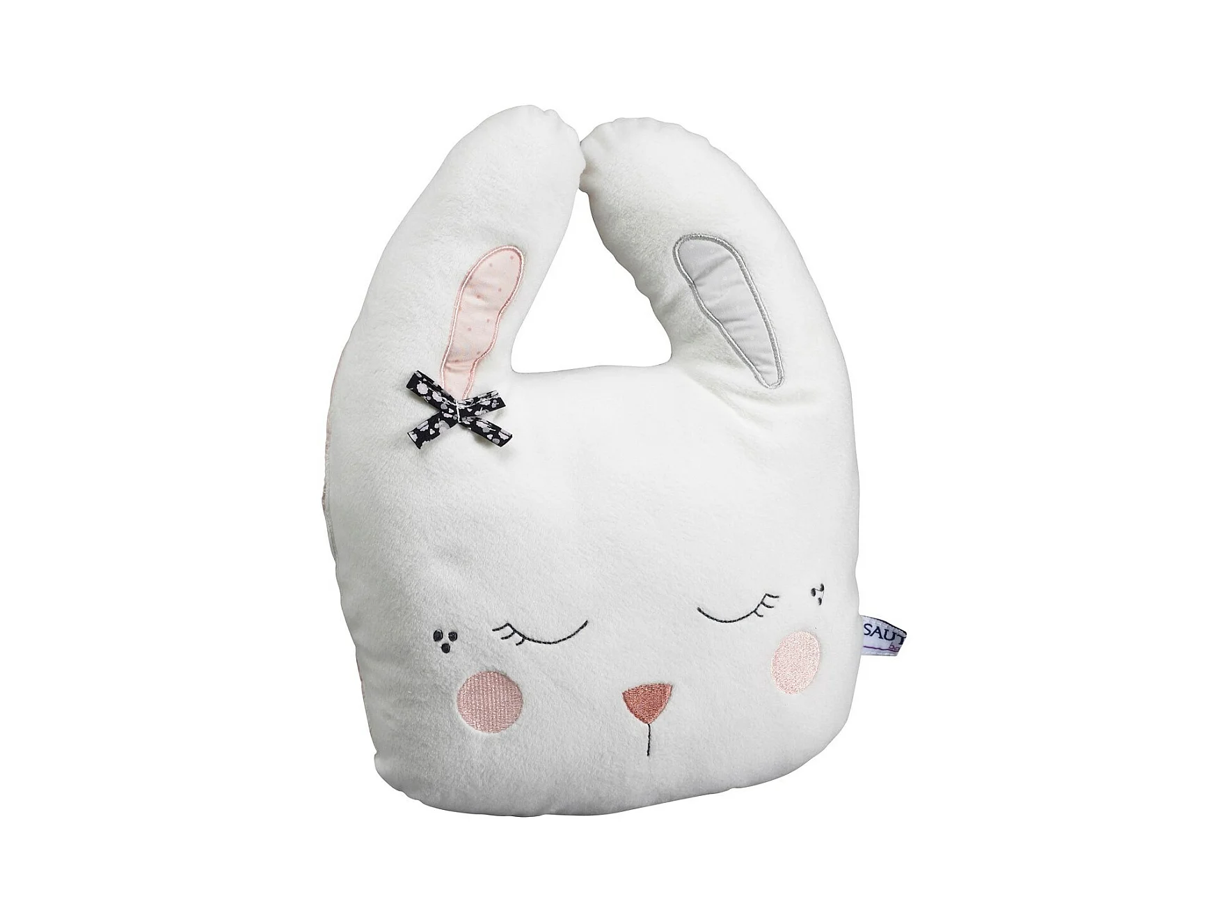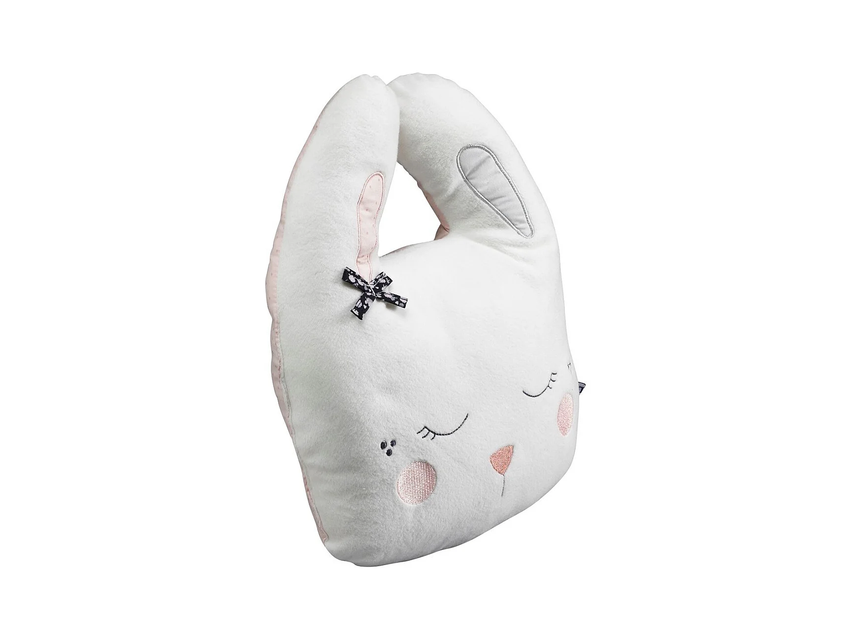 Coussin déco lapin 34x26cm en polyester blanc MISS FLEUR DE LUNE - Sauthon