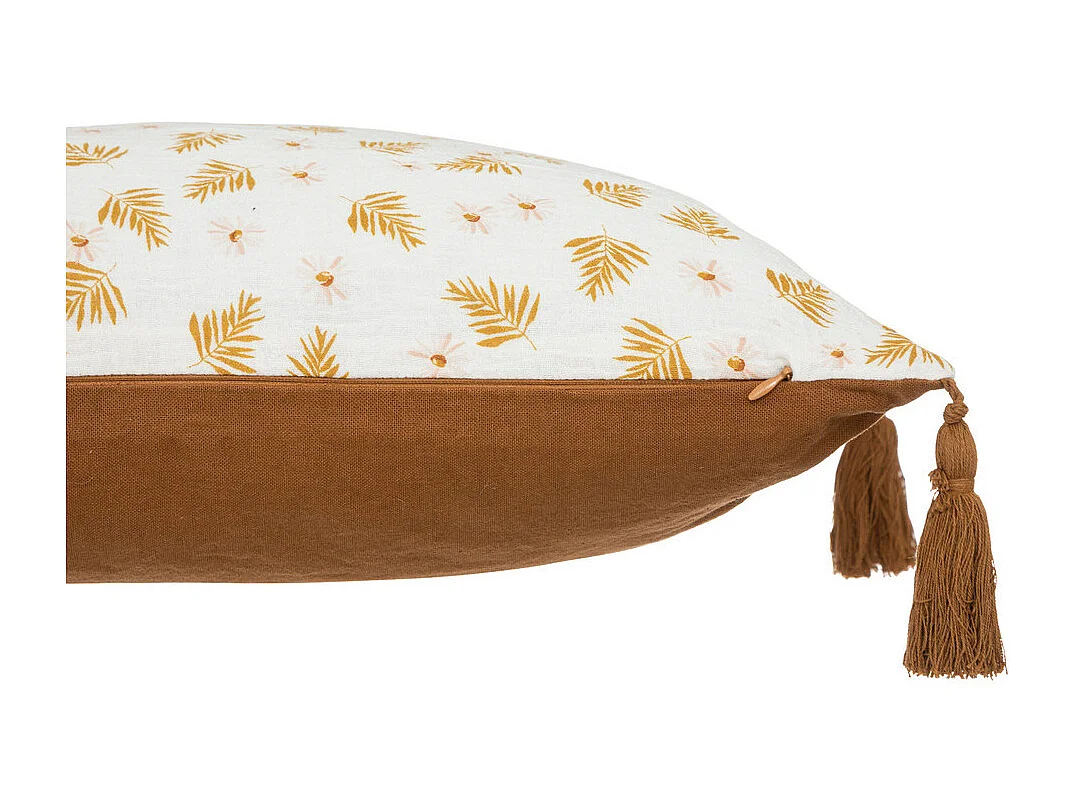 Coussin décoratif Blanc & Cannelle avec pompons 30 x 50 cm