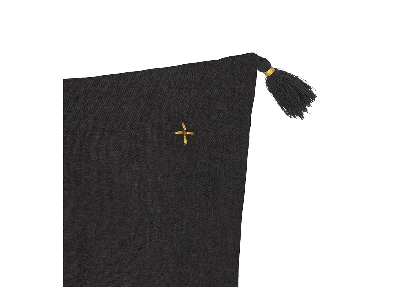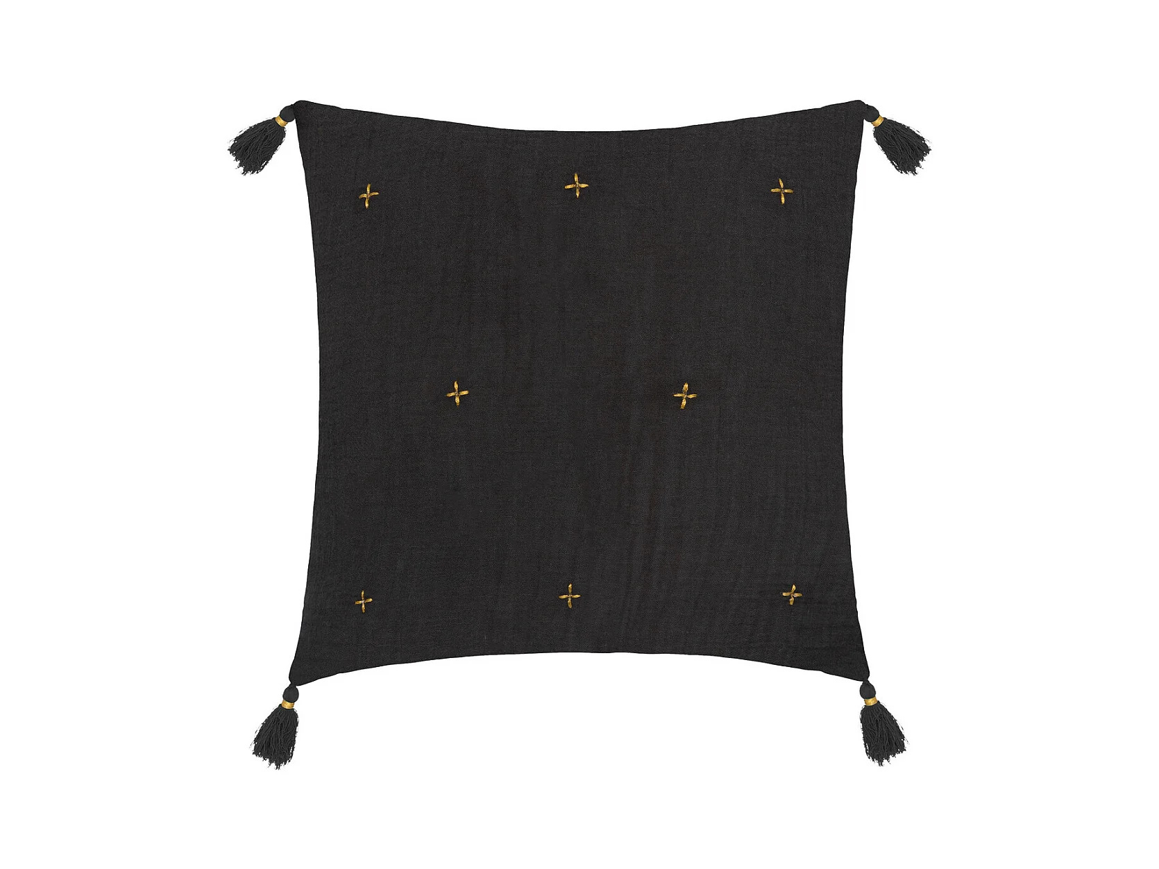 Coussin décoratif Gris Foncé brodé doré avec pompons 40 x 40 cm