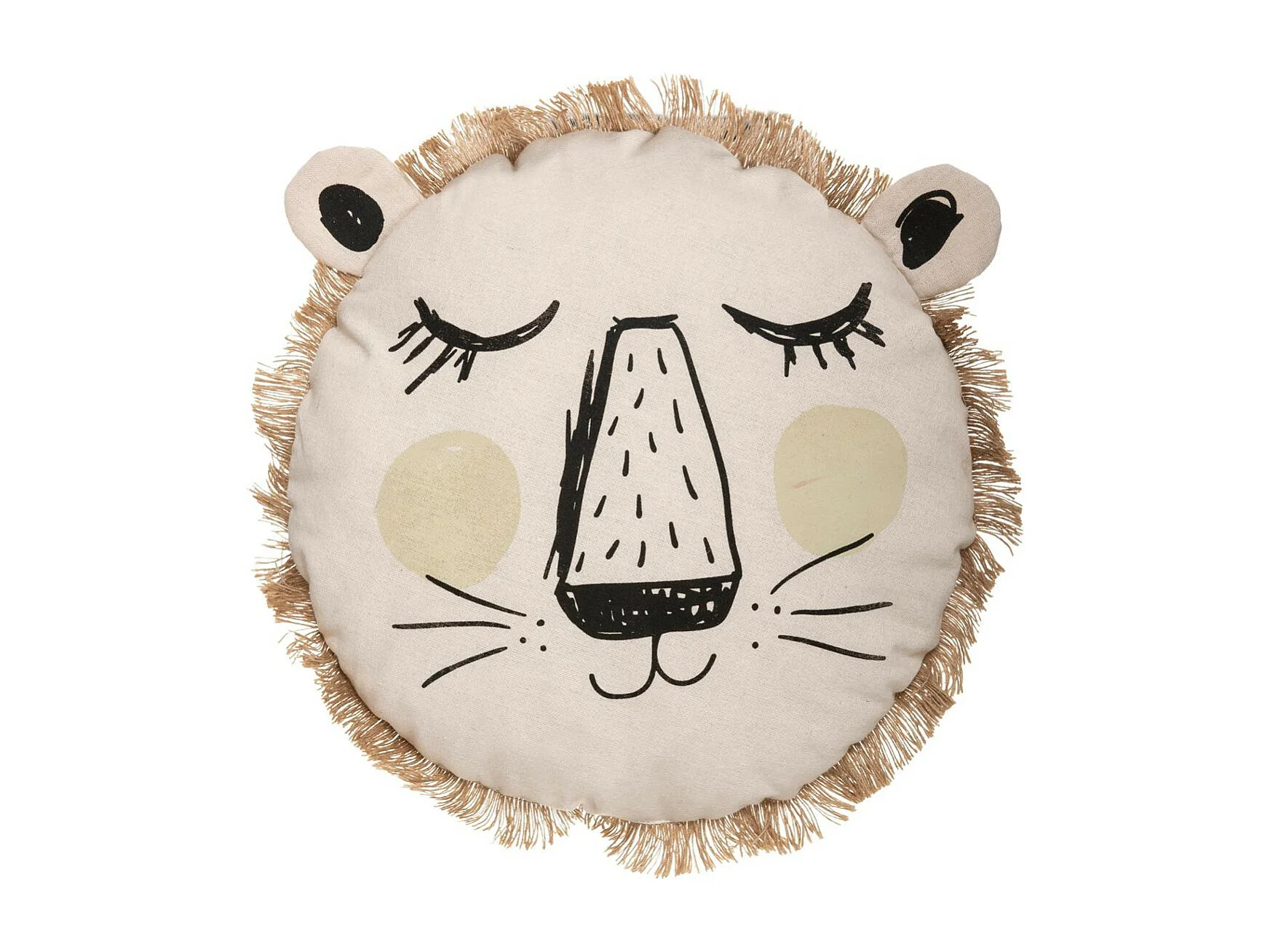 Coussin décoratif Lion avec Franges D 38 cm déco enfant