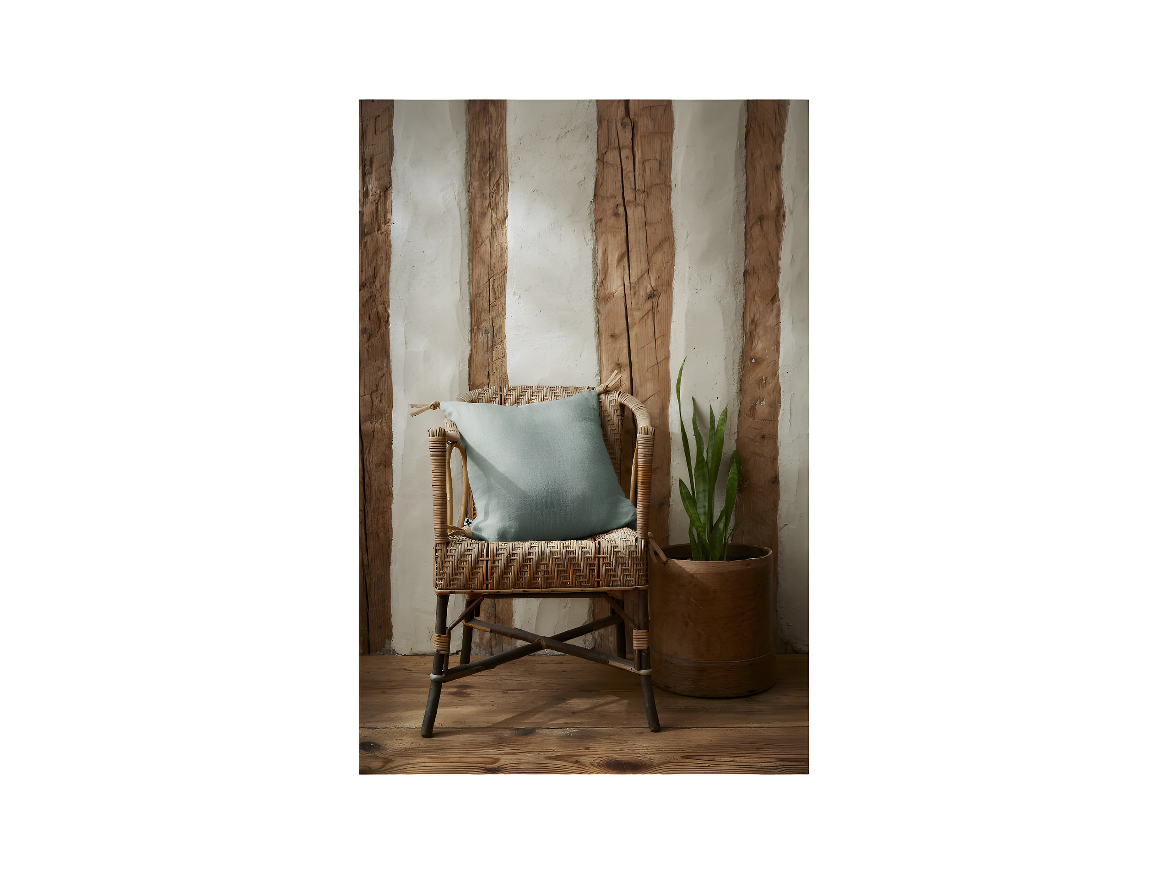 Coussin 45 x 45 cm en lin lavé vert avec 4 nouettes en jute - LUISA
