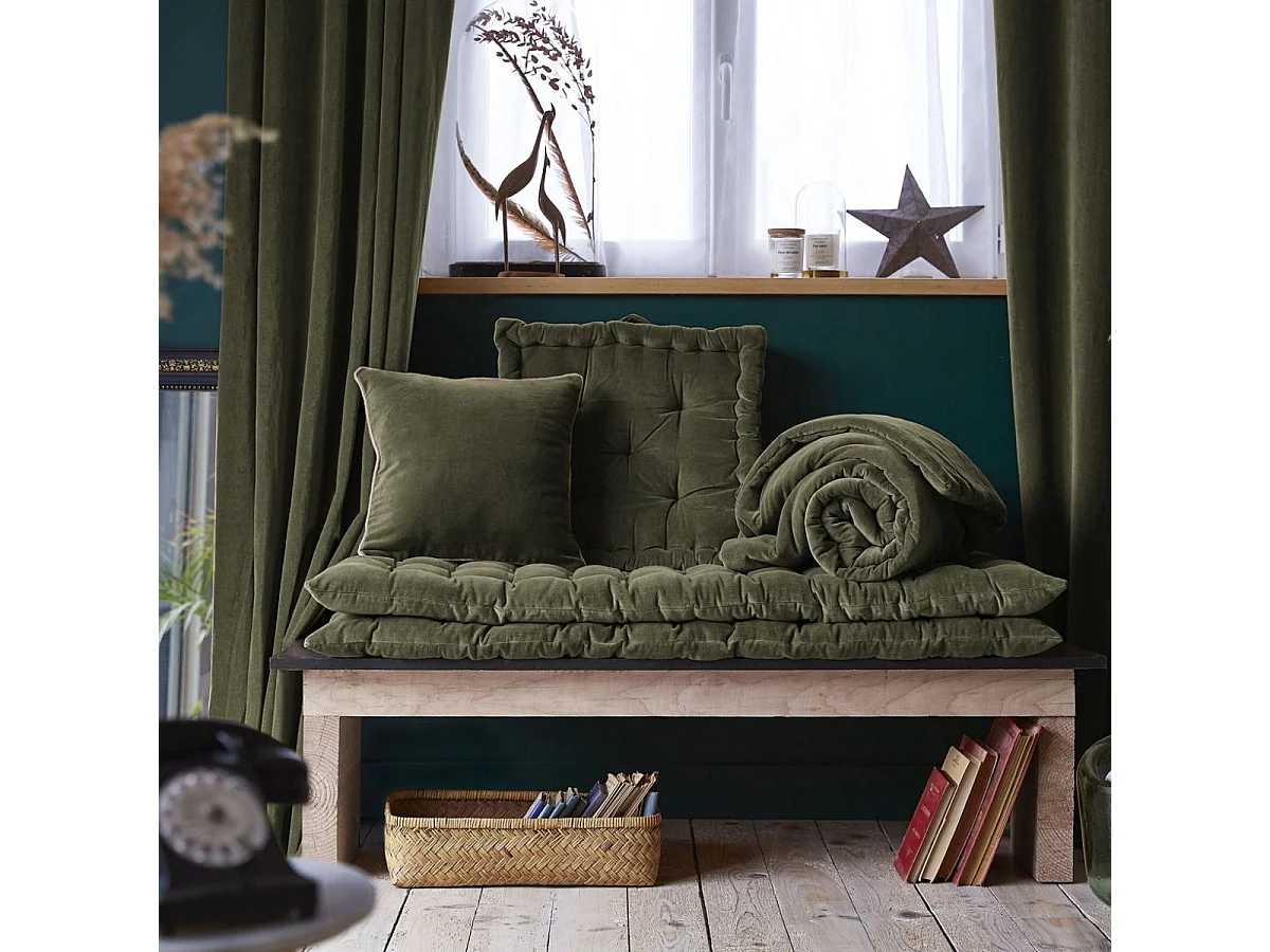 HARRIS - Coussin Déhoussable 45x45cm Velours de Coton Coloris Thym