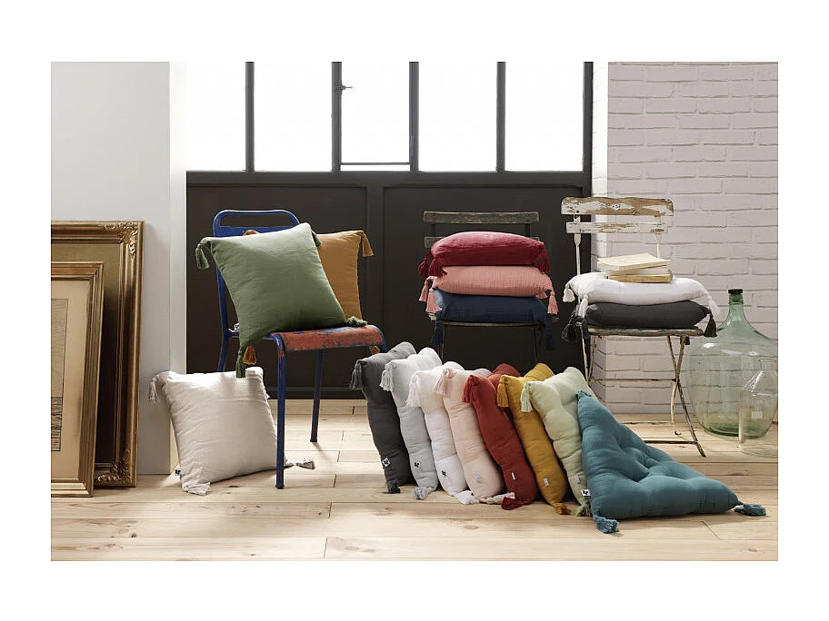 Coussin déhoussable avec pompons "Gaïa" 40 x 40 cm "Gaze de Coton" l'Effet Papillon
