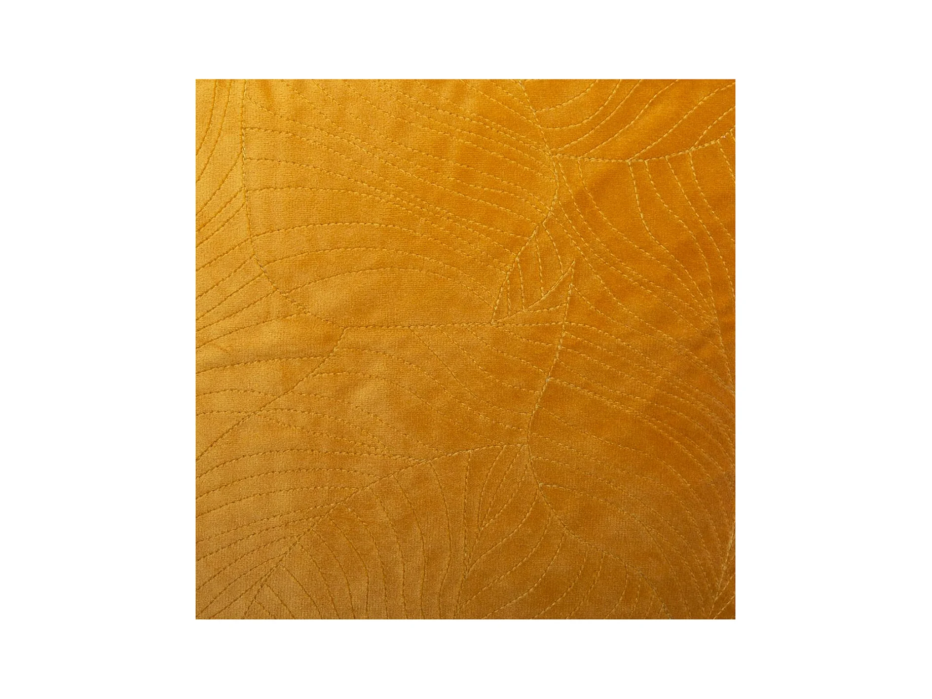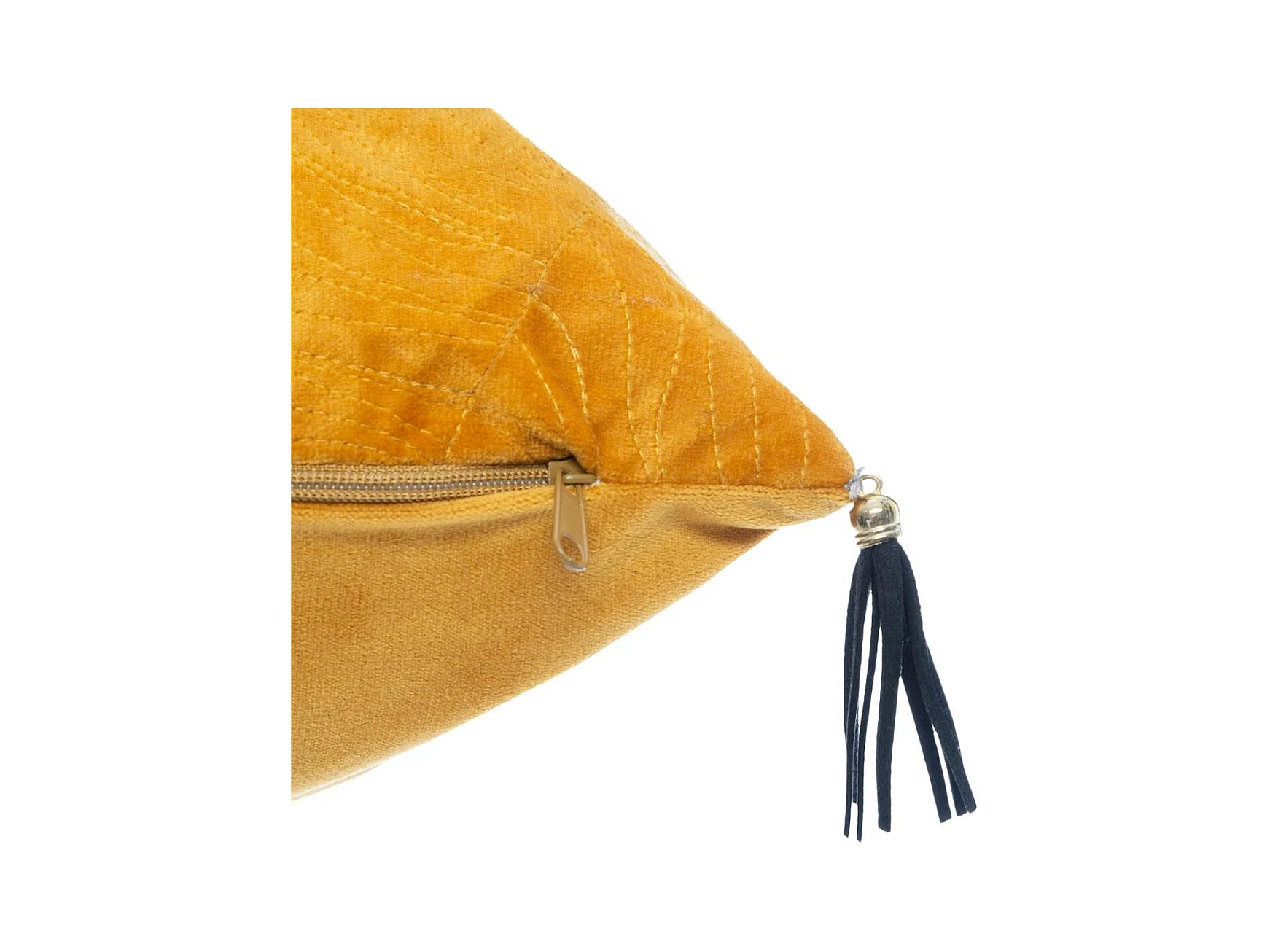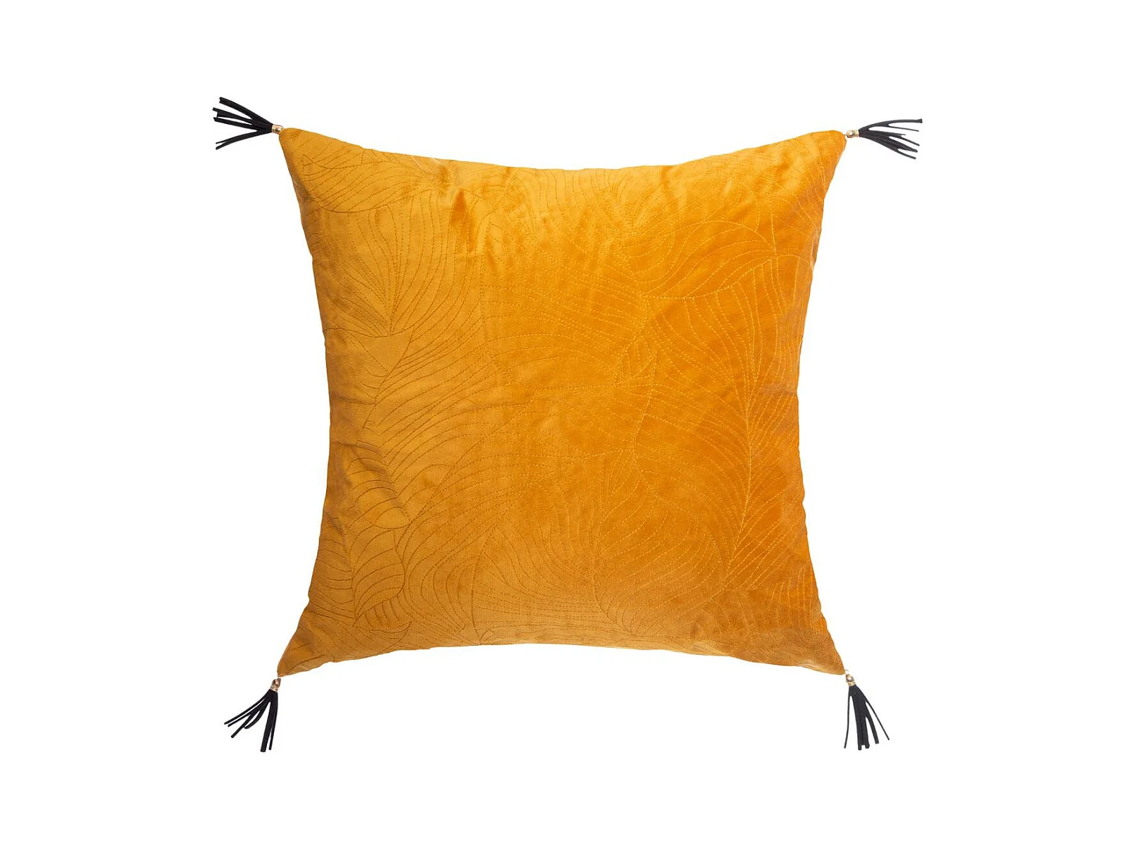 Coussin déhoussable en Velours Ocre avec broderie et pompons 40 x 40 cm