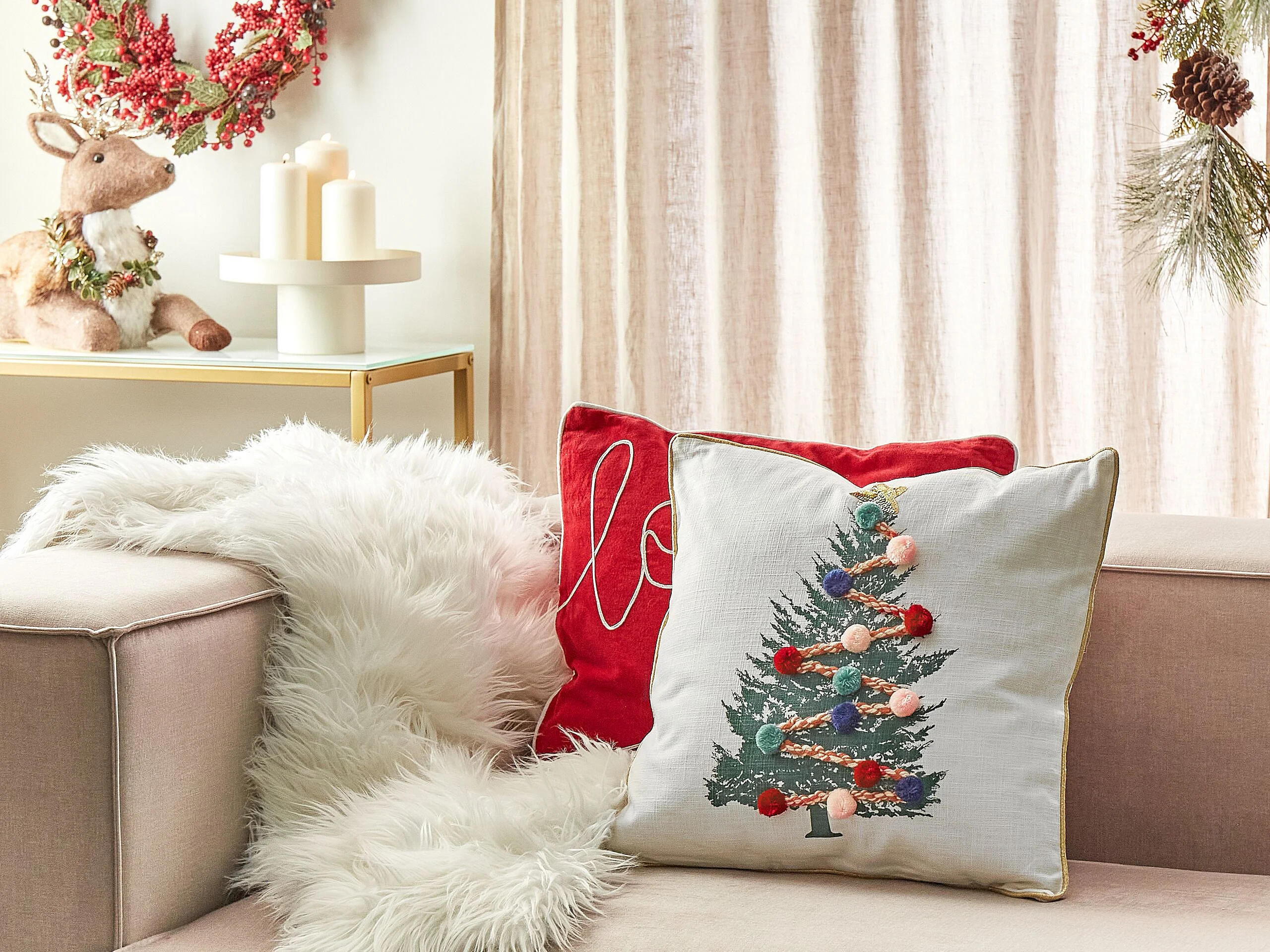 Coussin EPISCIA Coton 45 x 45 cm Blanc Motif de Noël