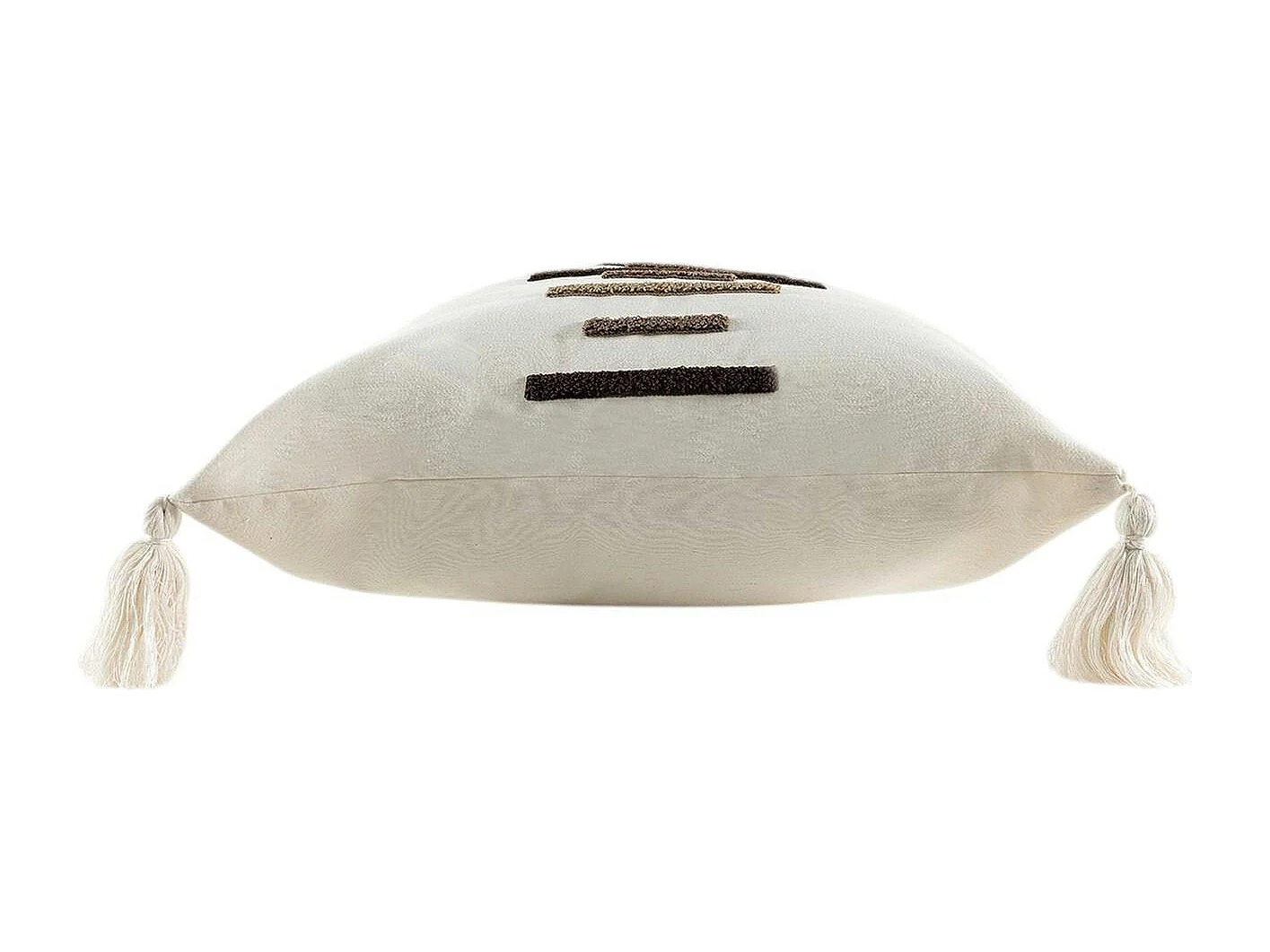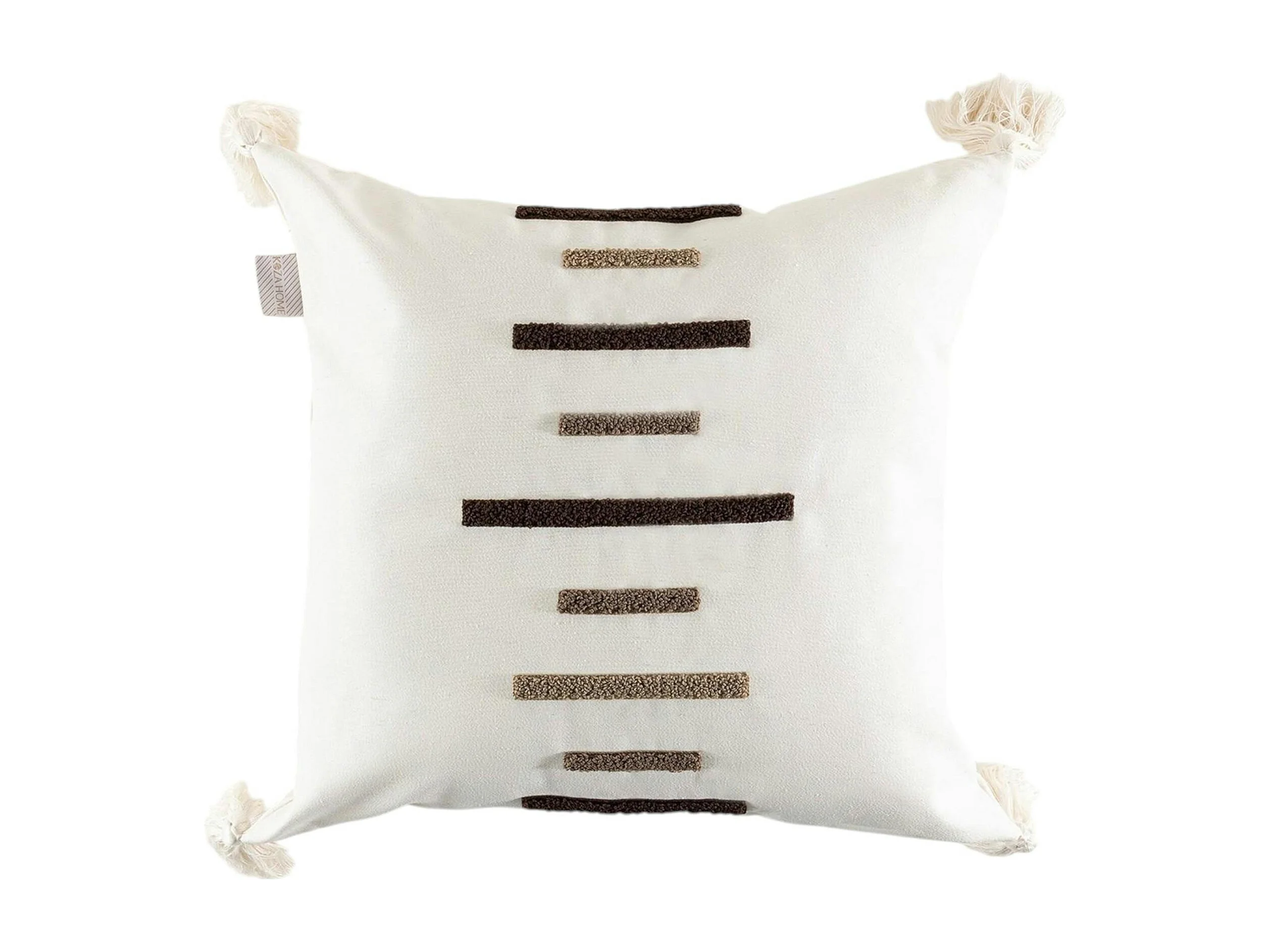 Coussin en lin à pompons – rayures en bouclette marron IZMIR