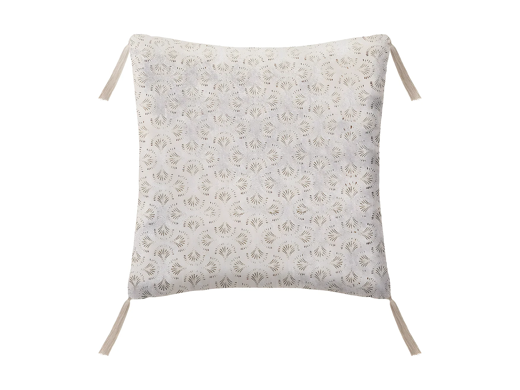 Coussin en Lin Beige imprimé Art déco avec pompons 40 x 40 cm
