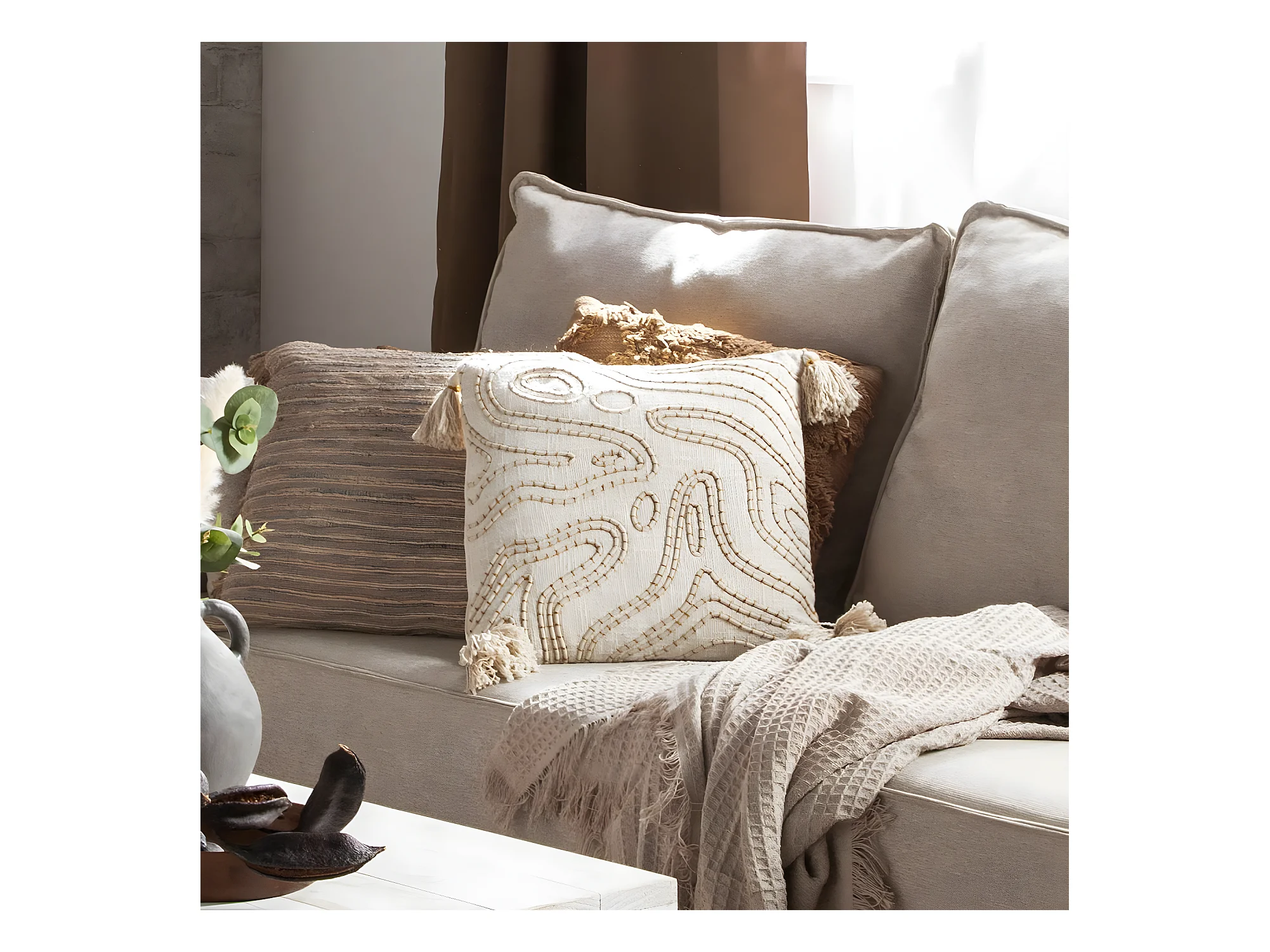 Coussin Déco "Franges Velours" 45x45cm Beige