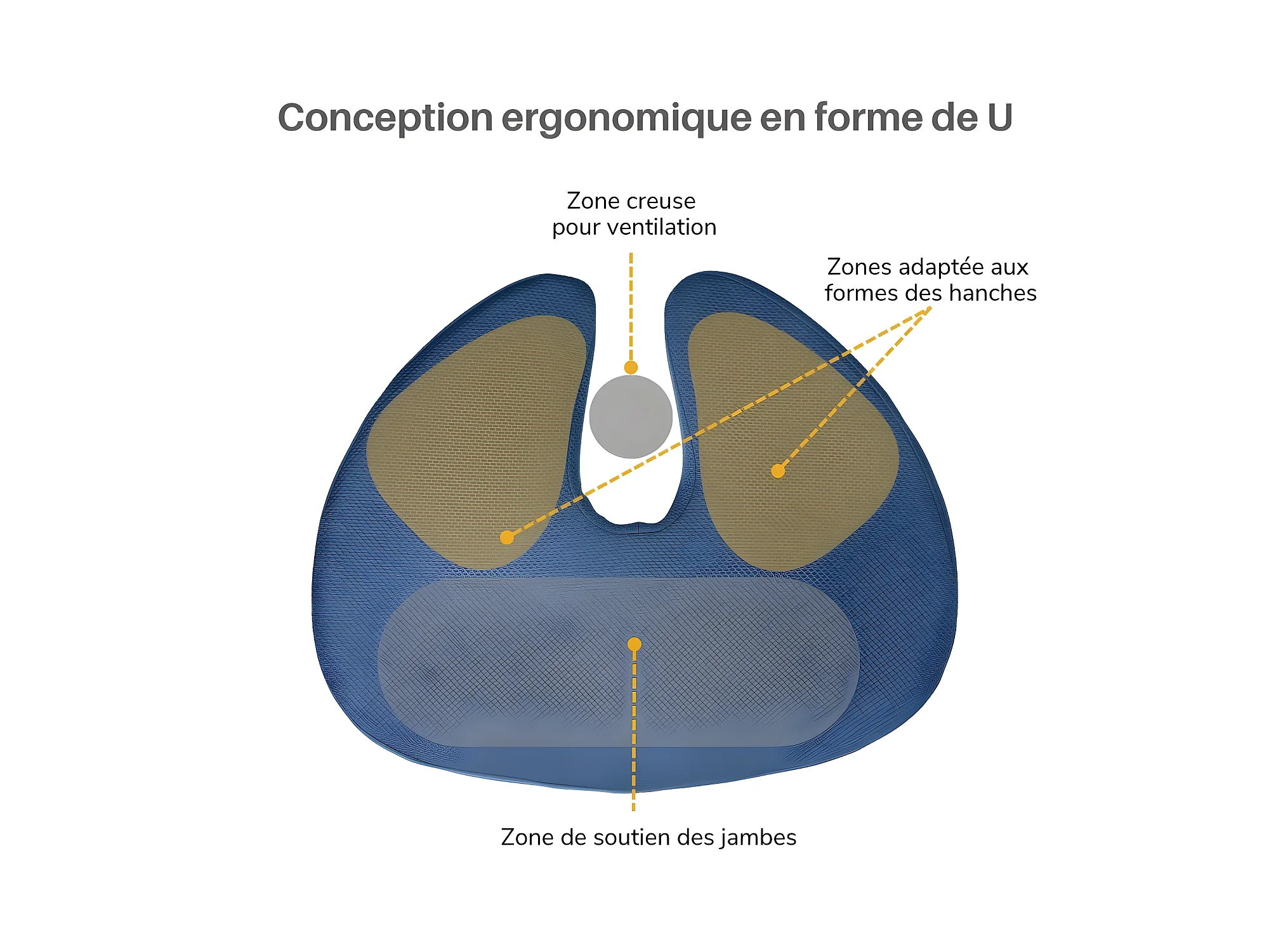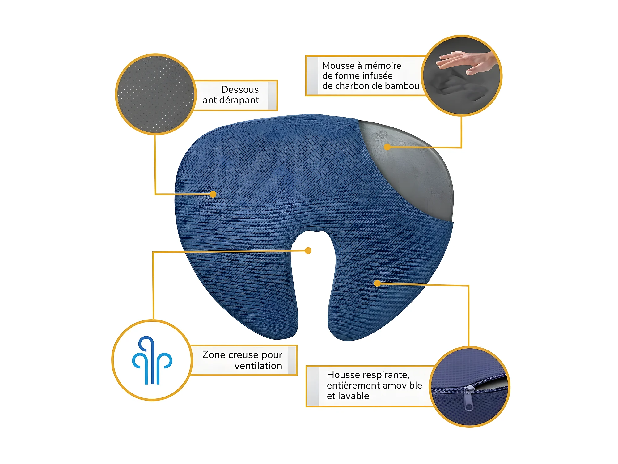 Coussin Ergonomique d'Assise en Forme de U - Charbon de Bambou - 46x37x6 - INPHYSIO
