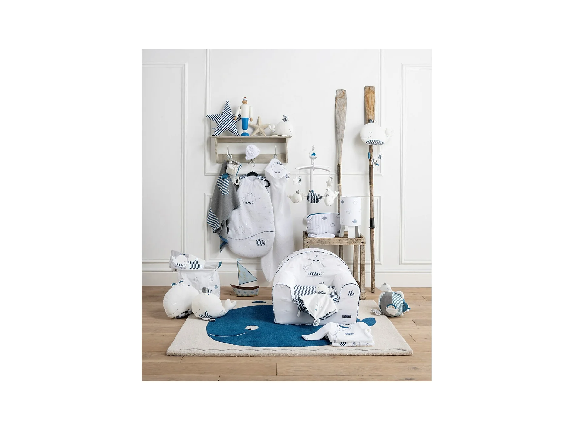 Coussin étoile en coton blanc BLUE BALEINE - Sauthon
