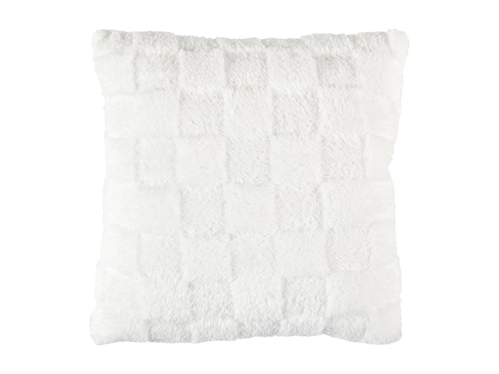 Coussin Flanelle Damier 40x40cm, Blanc et Beige, Doux et Confortable, Facile à Laver - TURIN