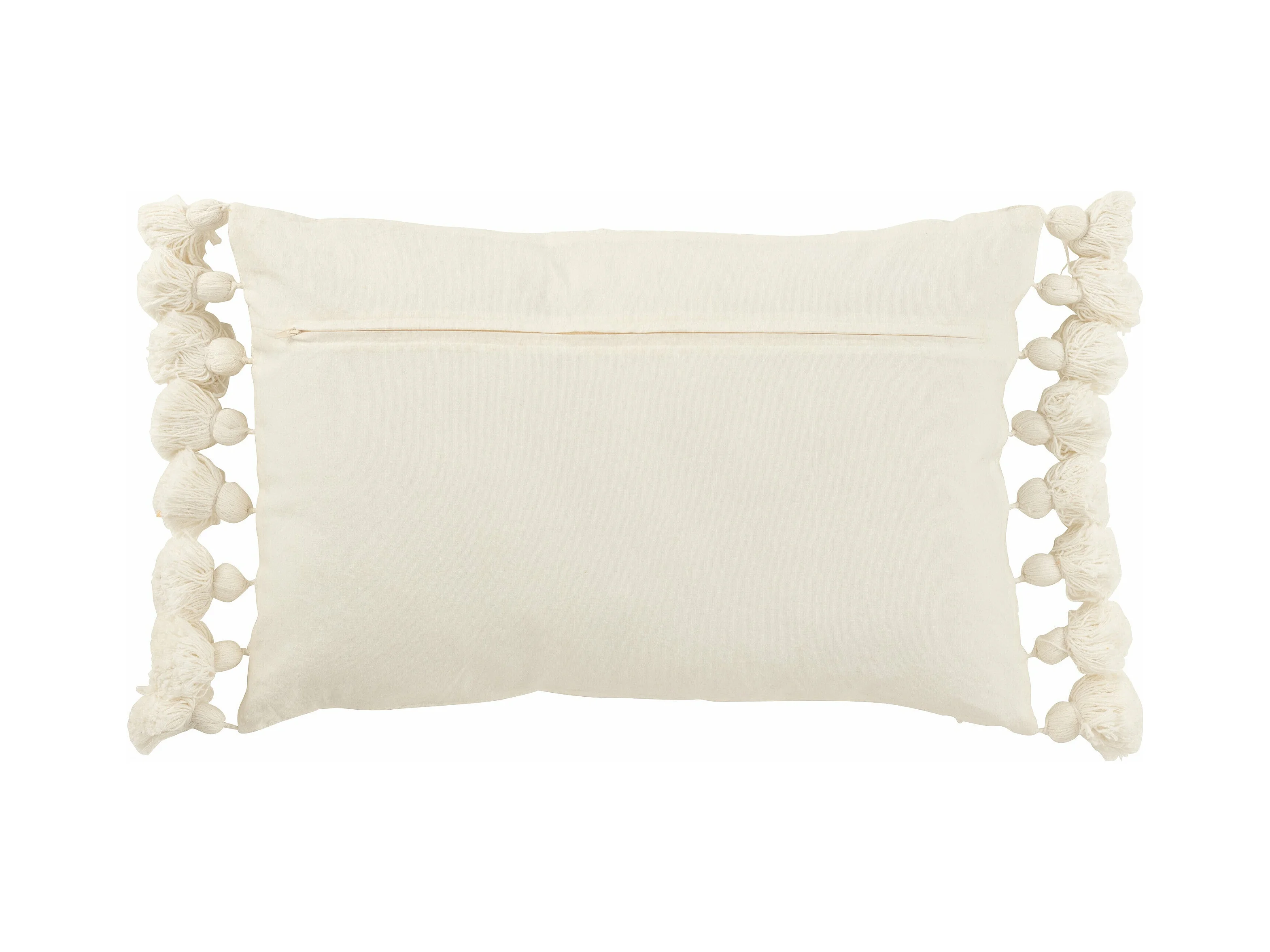 Coussin Déco Pompons "Bella" 38x59cm Blanc