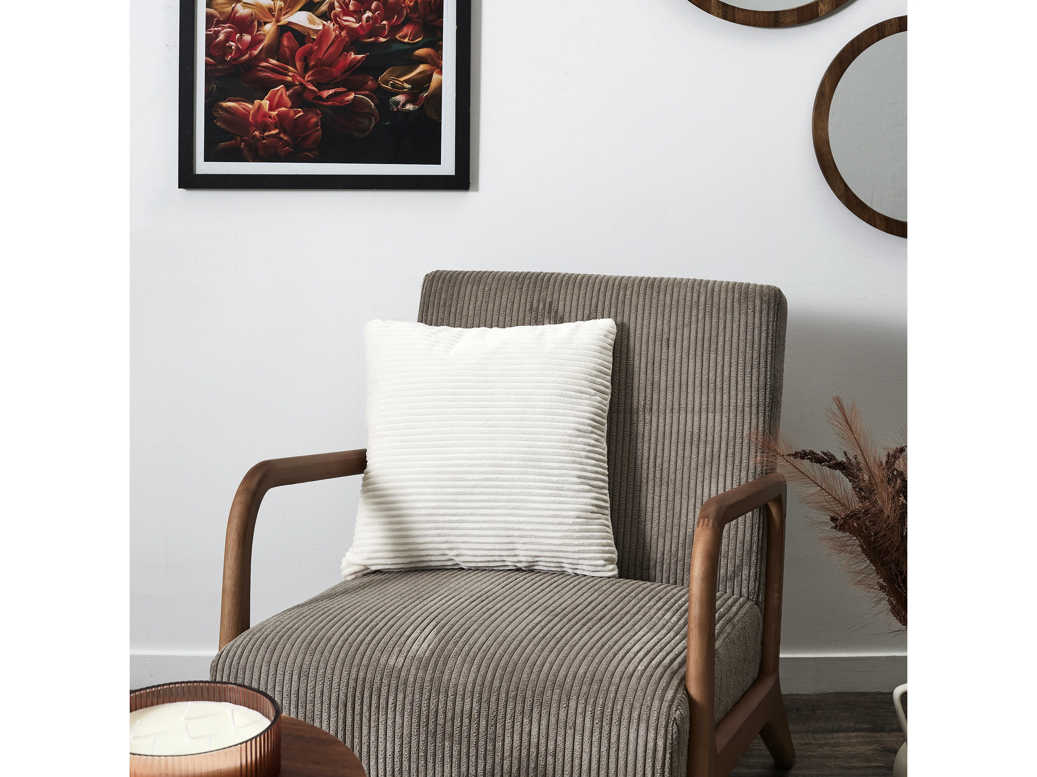 Coussin Grosse Cotes Flanelle 40x40cm Blanc, Gris, Rouge