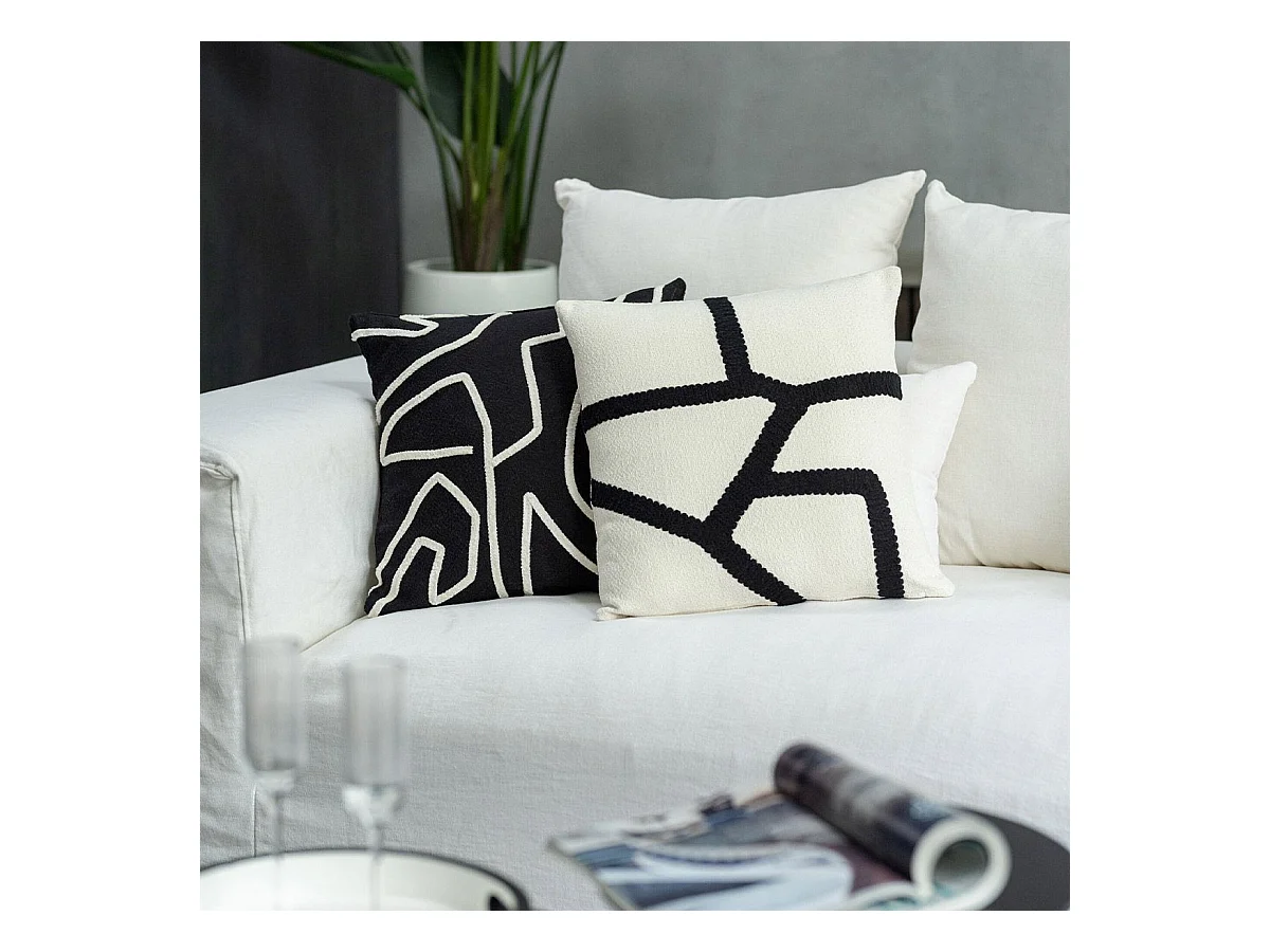 Coussin Déco "Ligne" 43x43cm Blanc & Noir