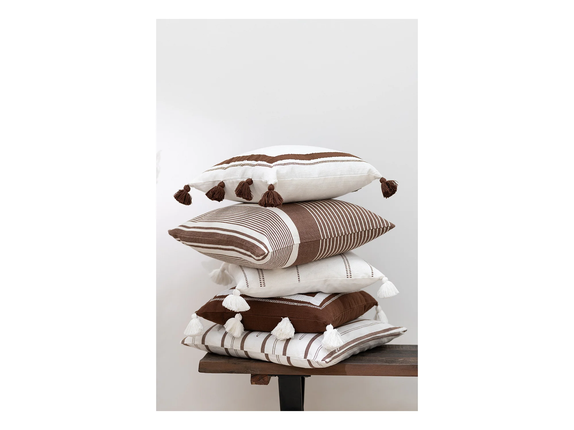 Coussin Déco Rayures "Mik" 50x50cm Marron