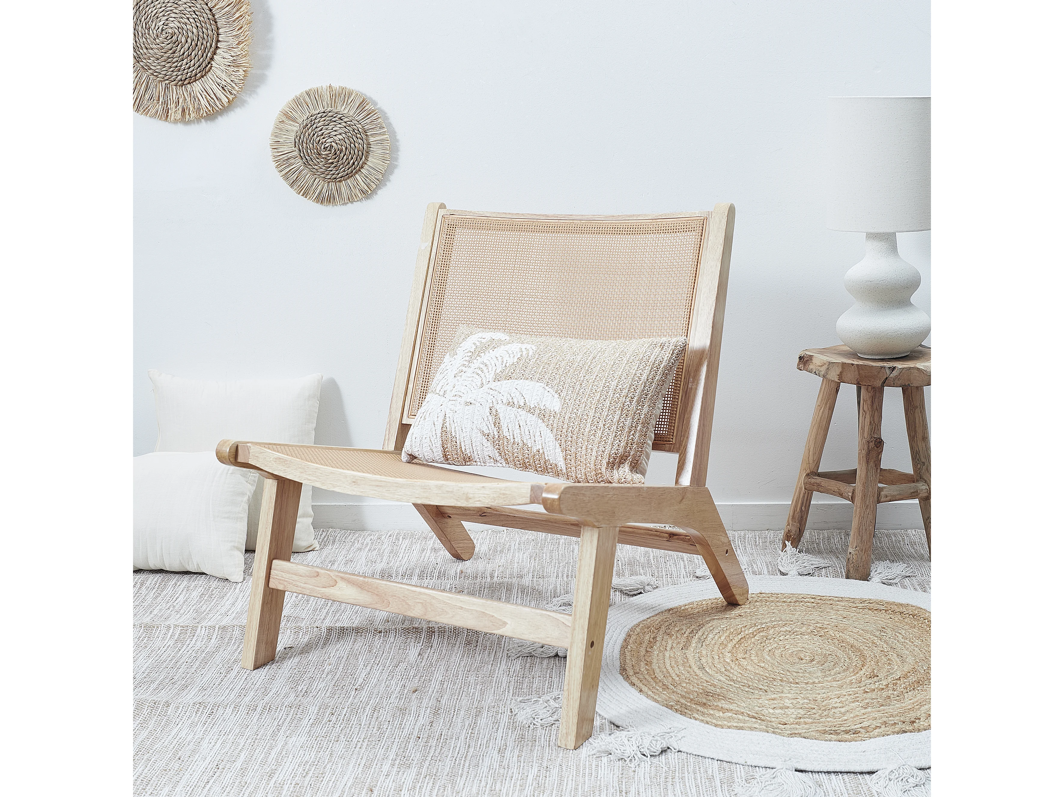 Coussin Déco Uni à Pompons "Panama" 50x70cm Naturel