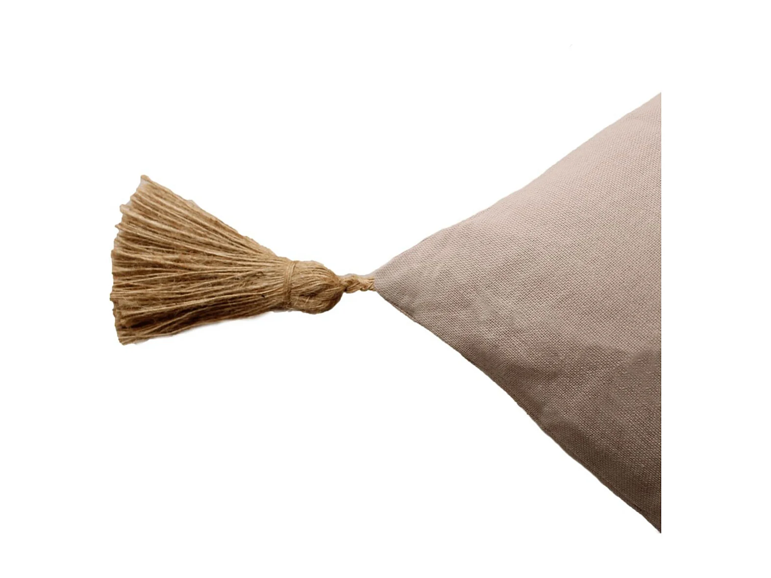 Coussin Déco Uni à Pompons "Panama" 50x70cm Naturel