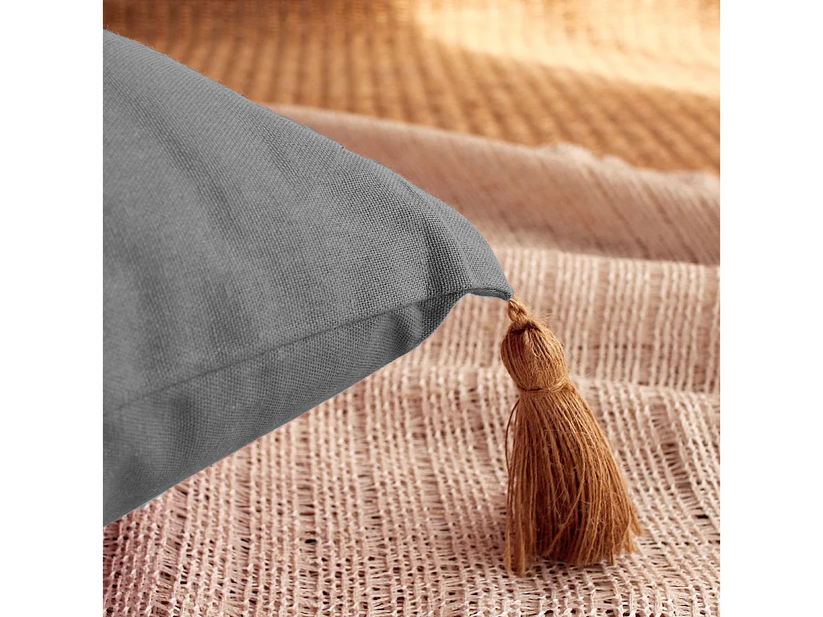 Coussin Déco Uni à Pompons "Panama" 50x70cm Gris Clair