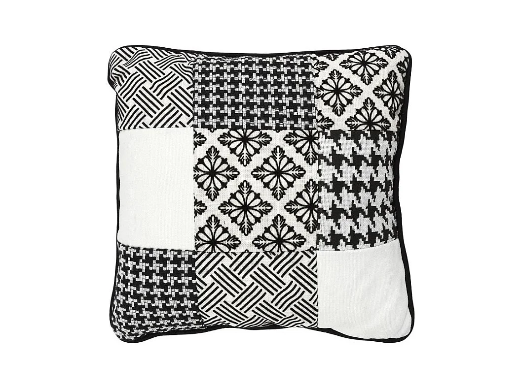 Coussin Patchwork Dehoussable 40x40cm Blanc, Noir