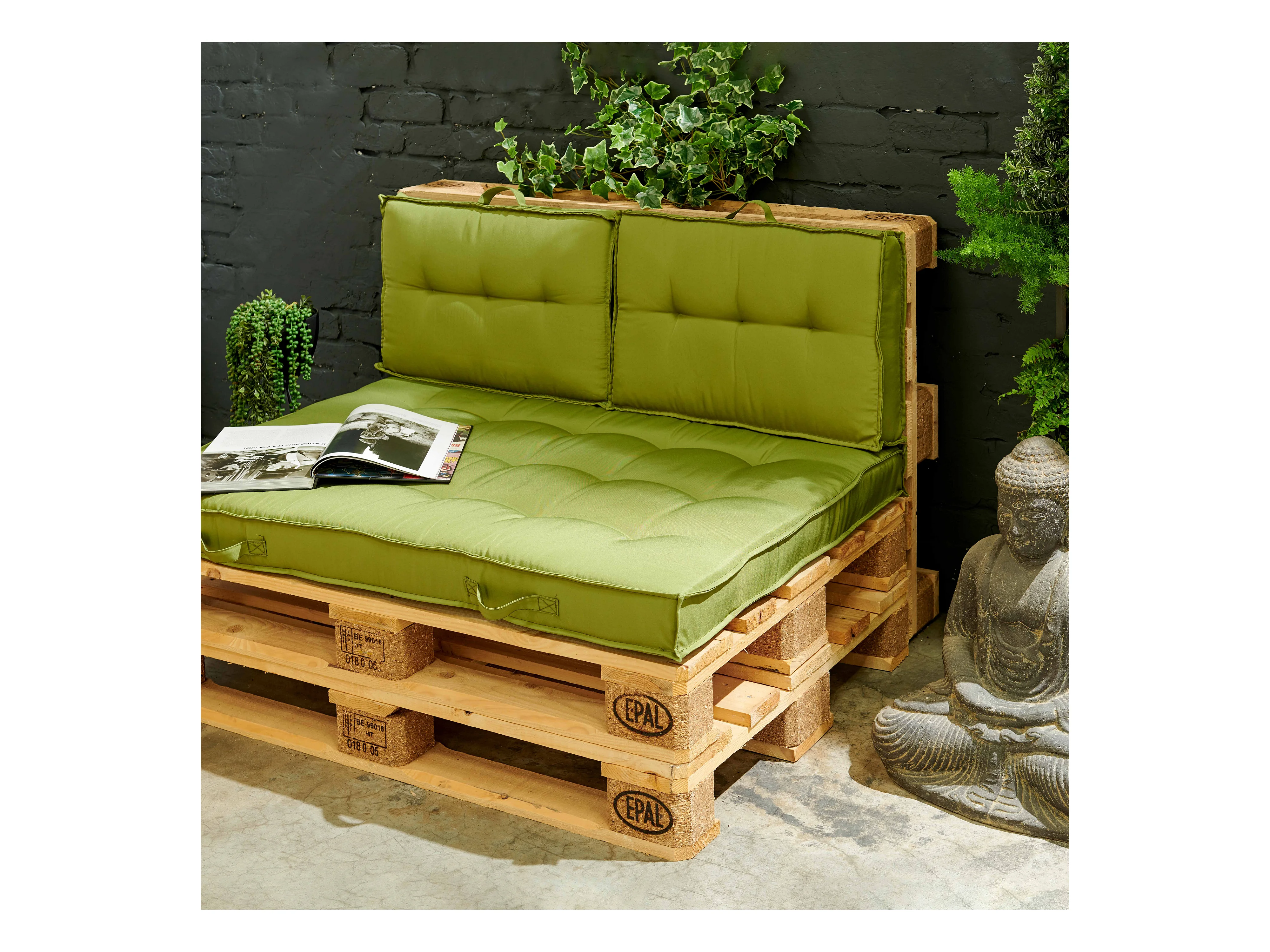 Lot 2 coussins palette dossier polyester vert 60x40x12 cm