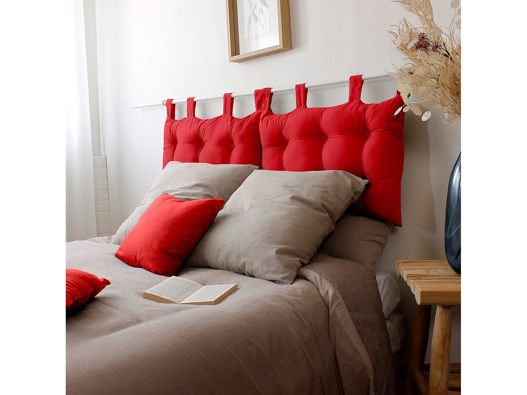 Coussin Tête de Lit Uni "Panama" 70cm Rouge
