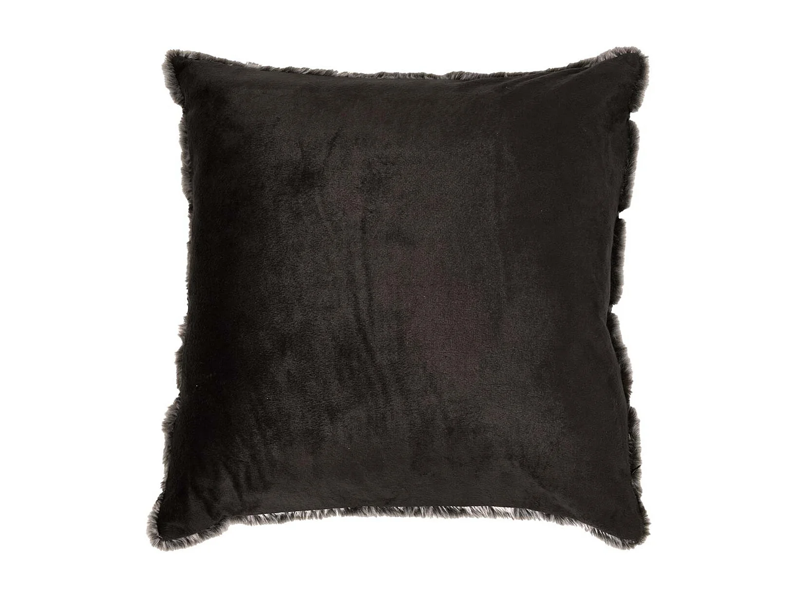 Coussin Ultra Doux 40x40cm Texturé Imitation Fourrure Gris Foncé Déhoussable - ELINO