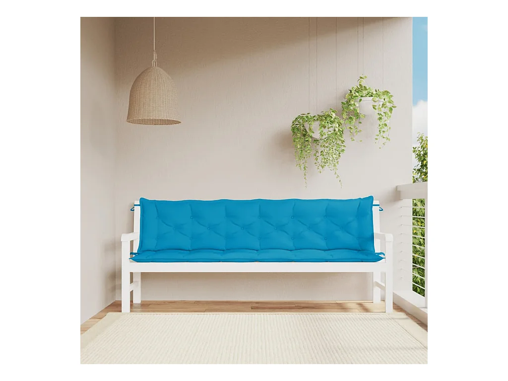 Coussins de banc jardin lot de 2 bleu 200x50x7 cm tissu Oxford FR292041