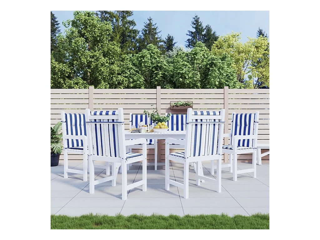 Coussins de chaise à dossier haut 6pcs rayures bleu/blanc tissu OFR19376