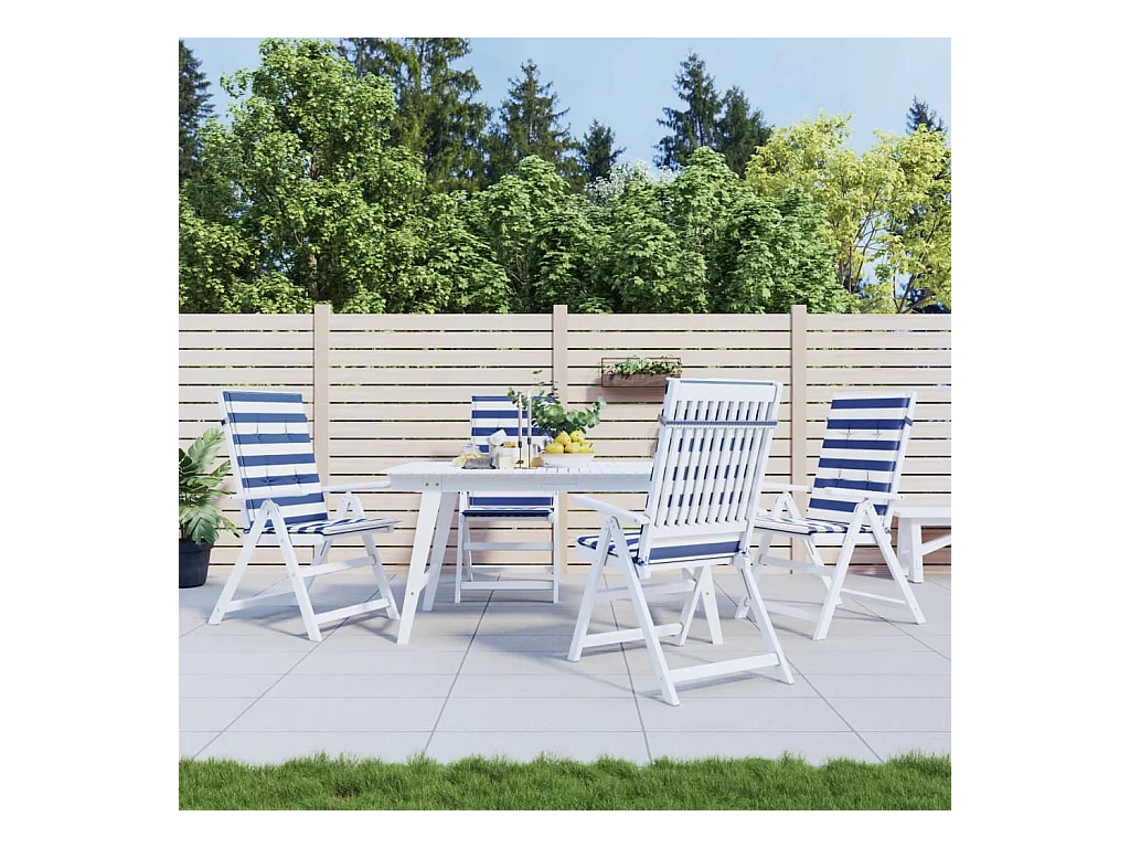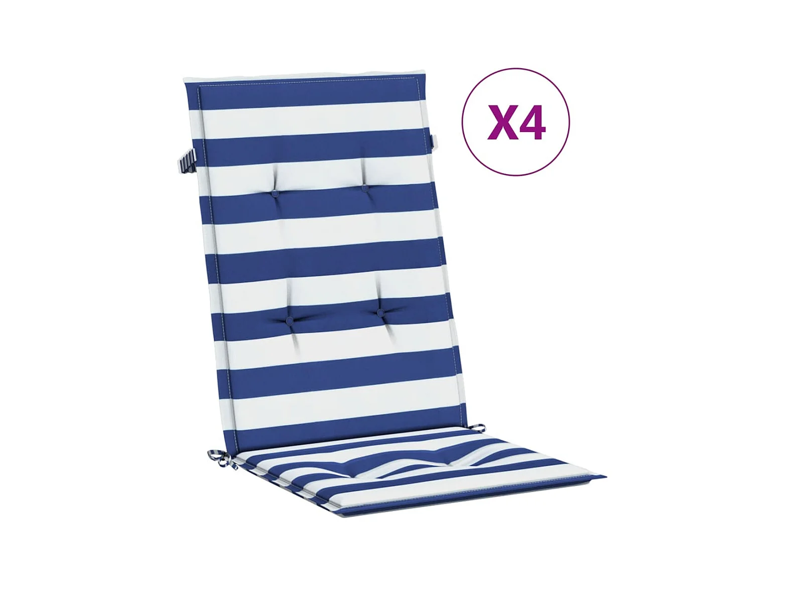 Coussins de chaise à dossier haut 4pcs rayures bleu/blanc tissu OFR73903