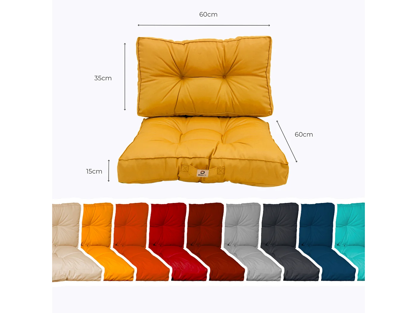 Coussins pour salon de jardin capitonné 60x60cm jaune