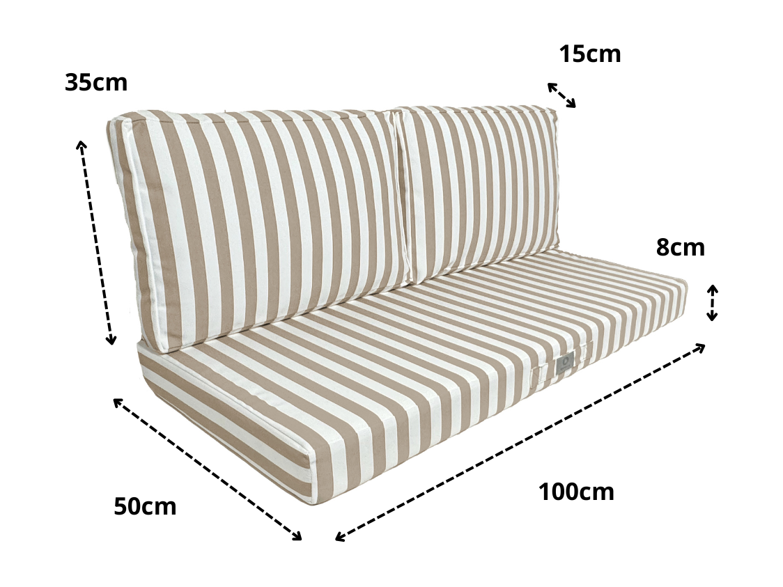 Coussins pour salon de jardin déhoussable 100x50cm - Rayure Beige