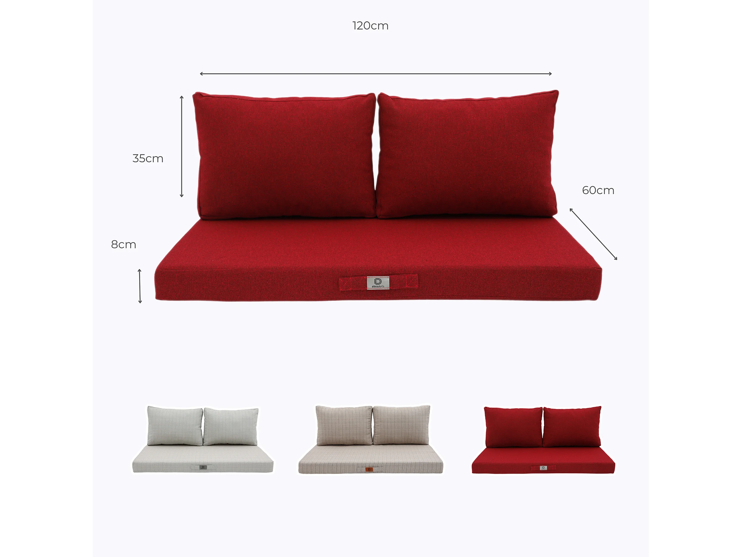 Coussins pour salon de jardin déhoussable 100x50cm Rouge