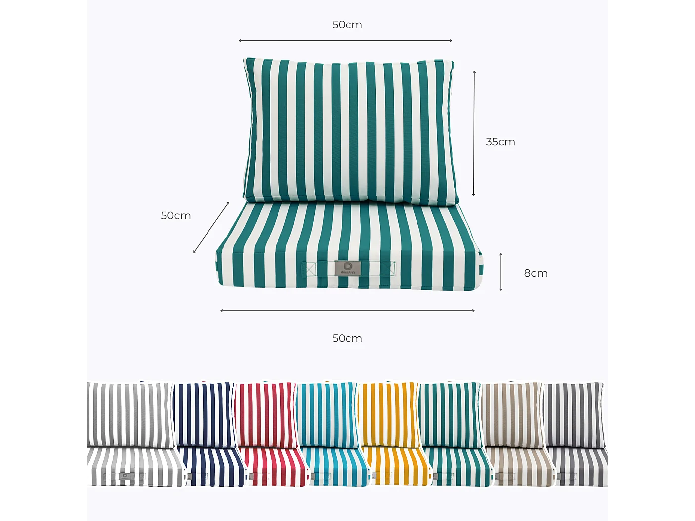 Coussins pour salon de jardin déhoussable 50x50cm Rayure vert