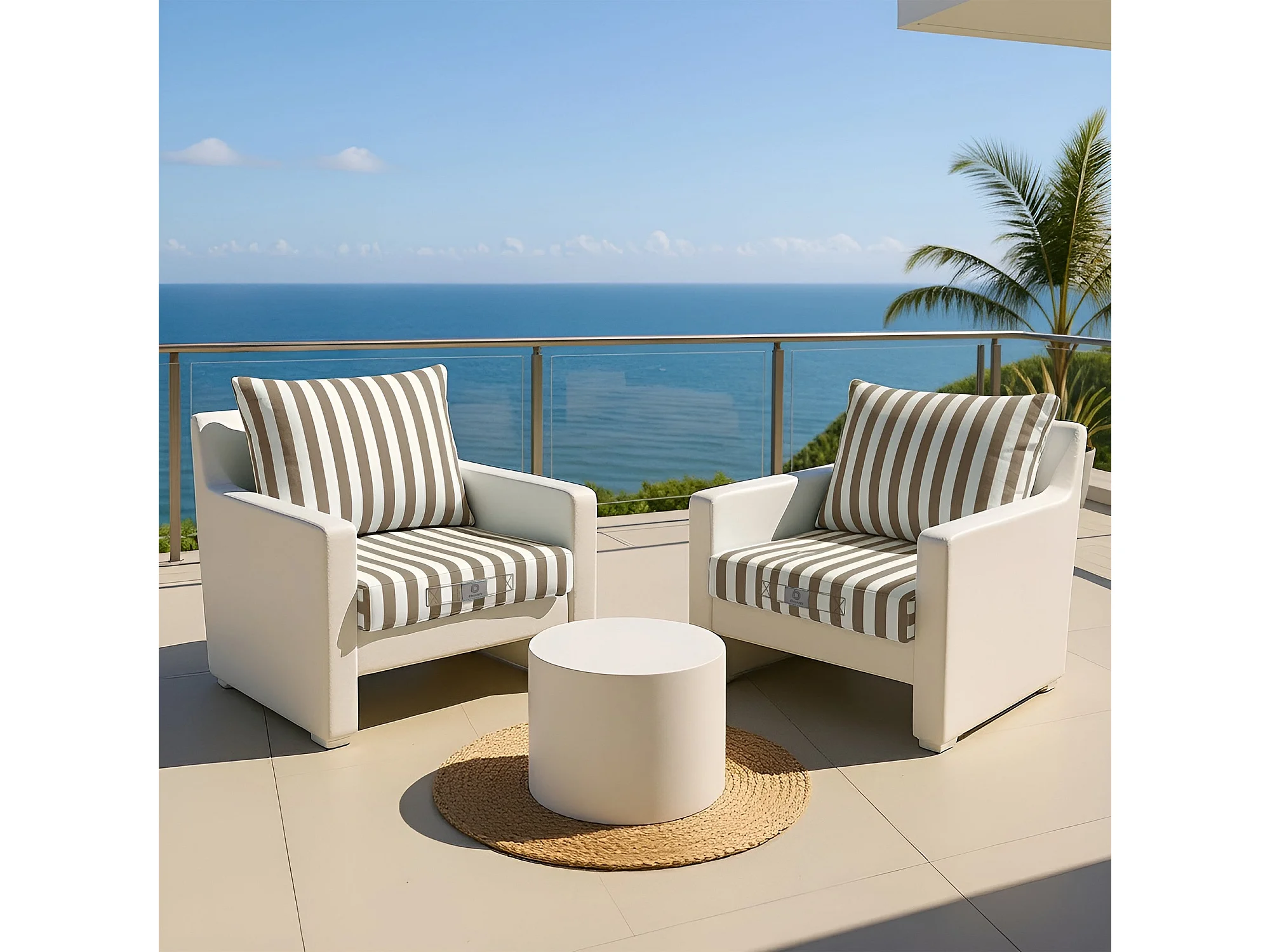 Coussins pour salon de jardin déhoussable 60x60cm - Rayure Beige