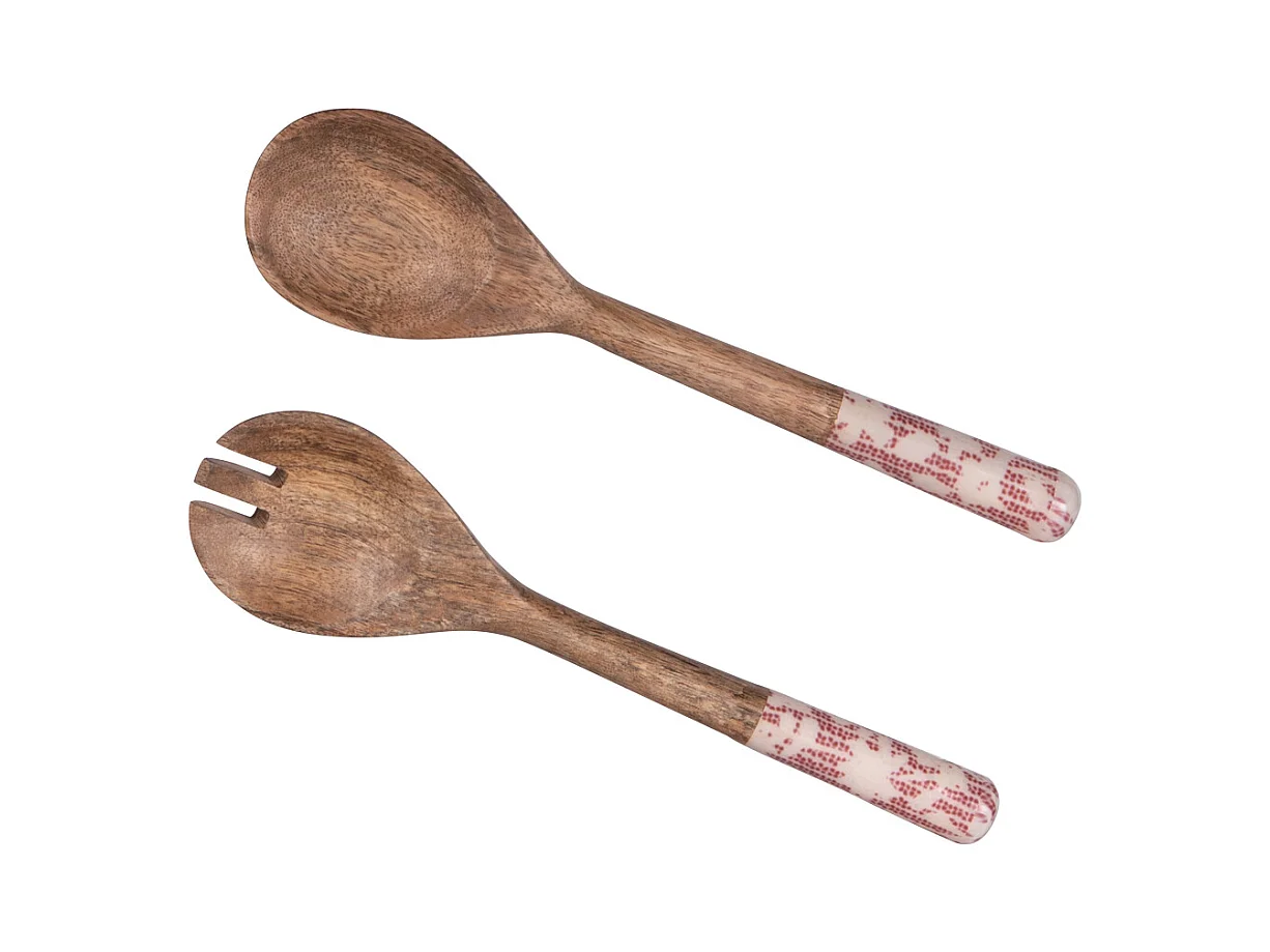 Couverts à salade en bois de manguier avec motif mandala brun - MANGO